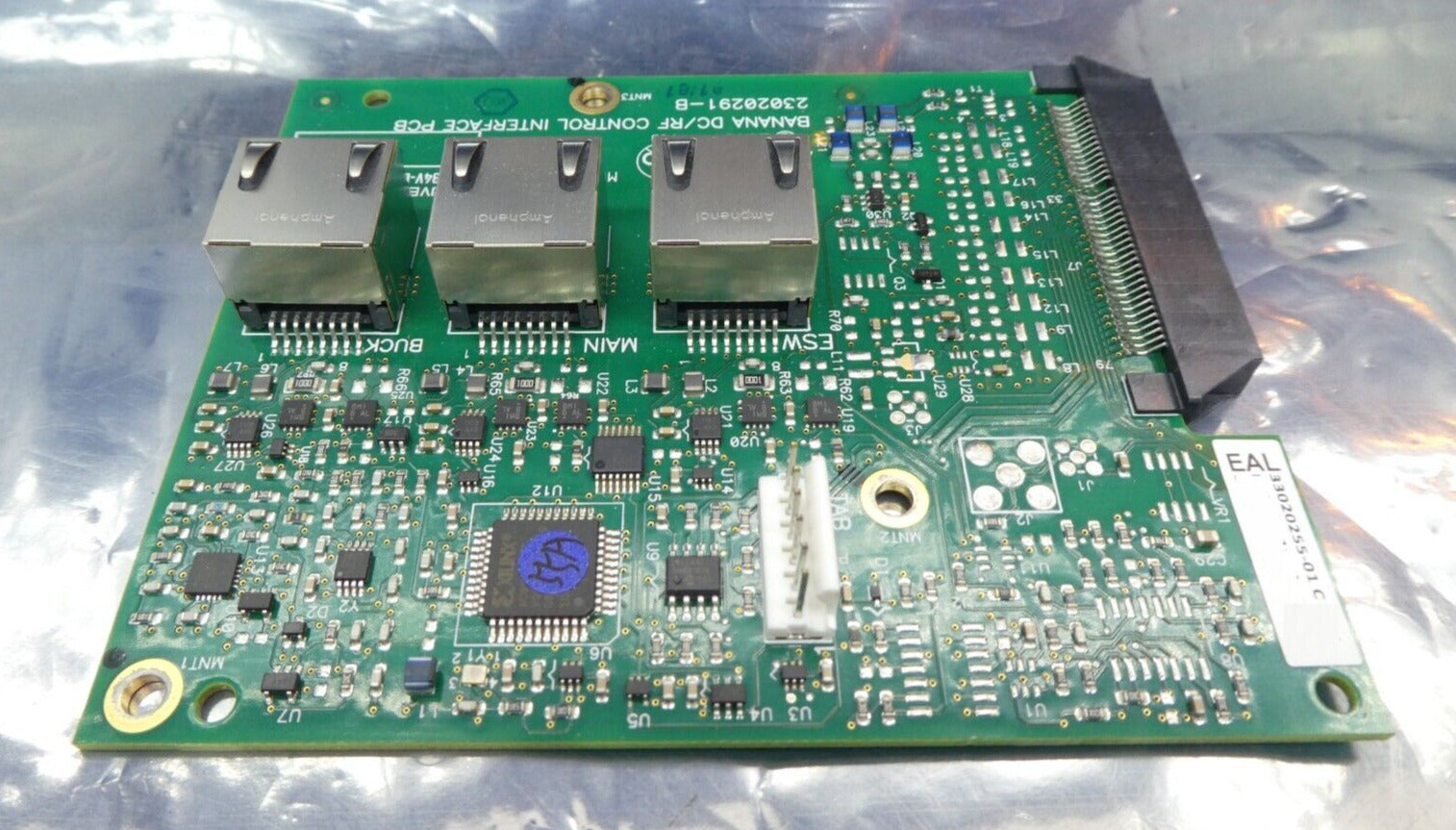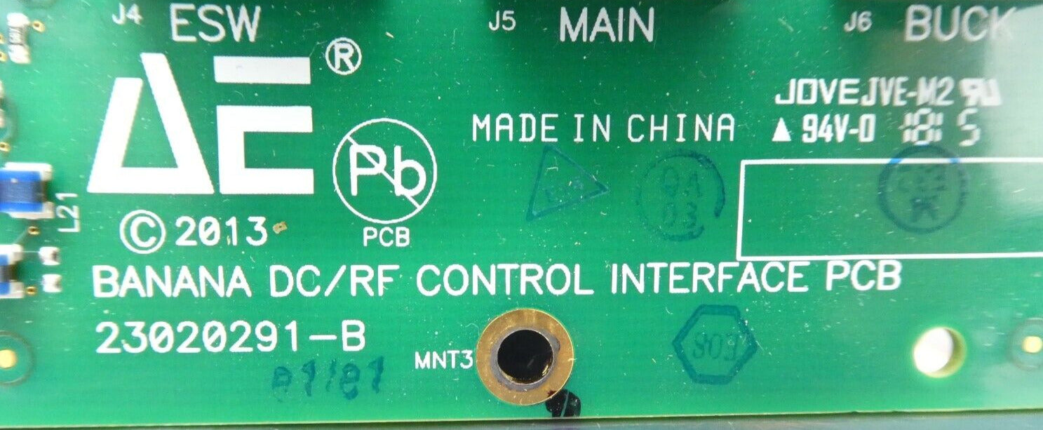 This AE Advanced Energy 23020291-B Banana DC/RF Control Interface PCB is used working surplus. The physical condition is good, but there are signs of previous use and handling.