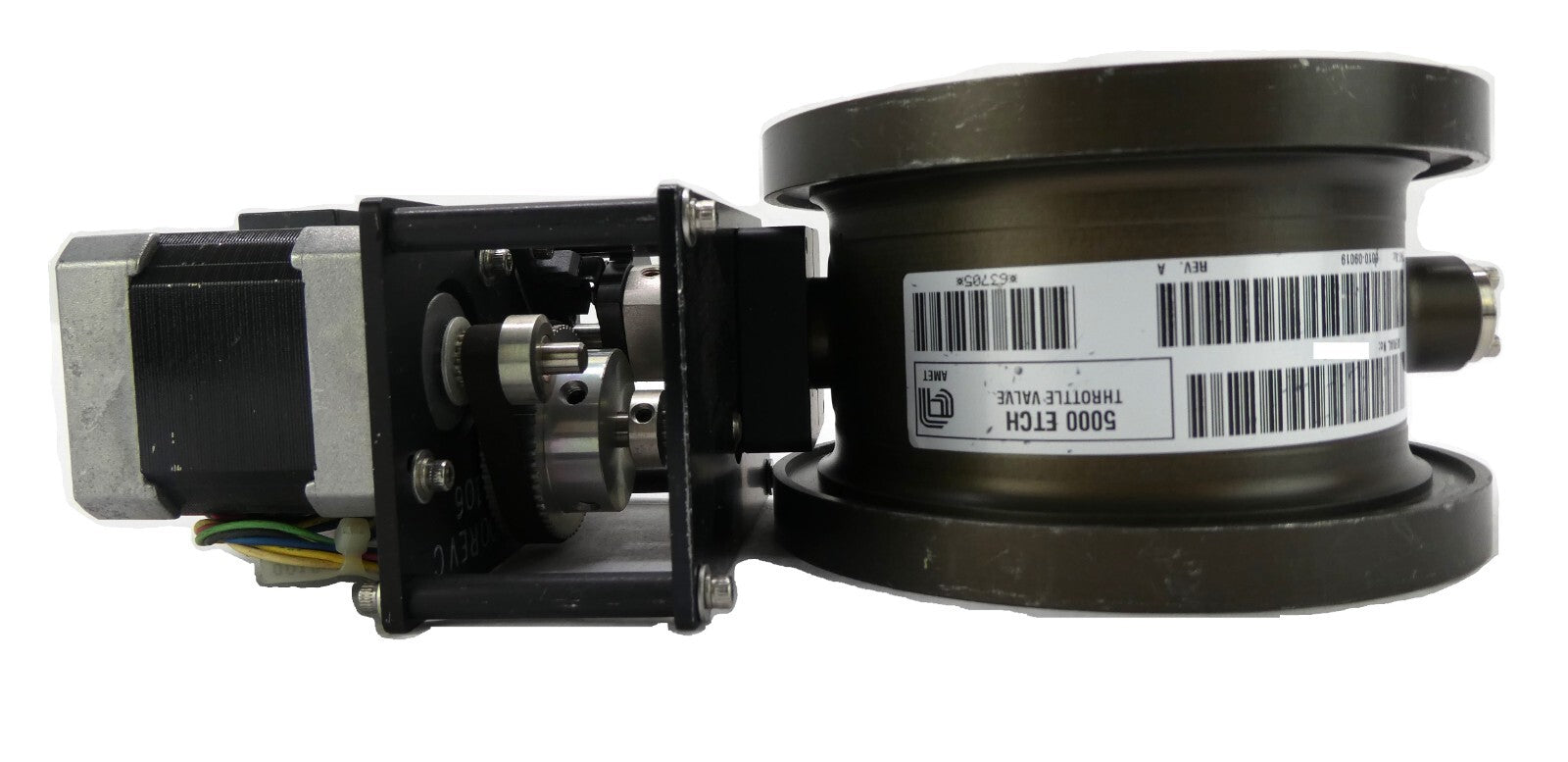 This AMAT Applied Materials 0010-09019 5000 Etch Throttle Valve is manufacturer refurbished surplus. The physical condition is good, but there may be signs of previous use and handling.