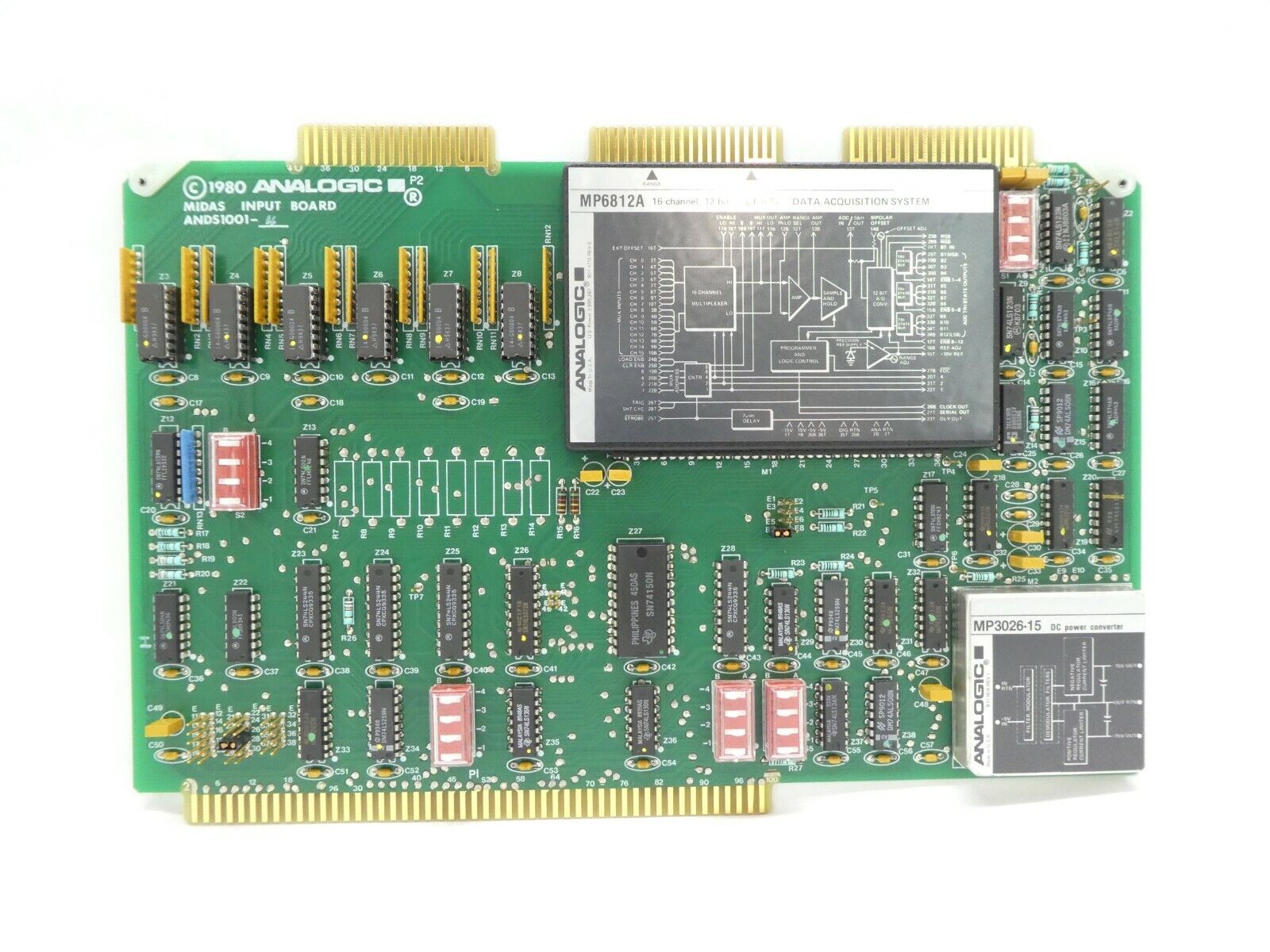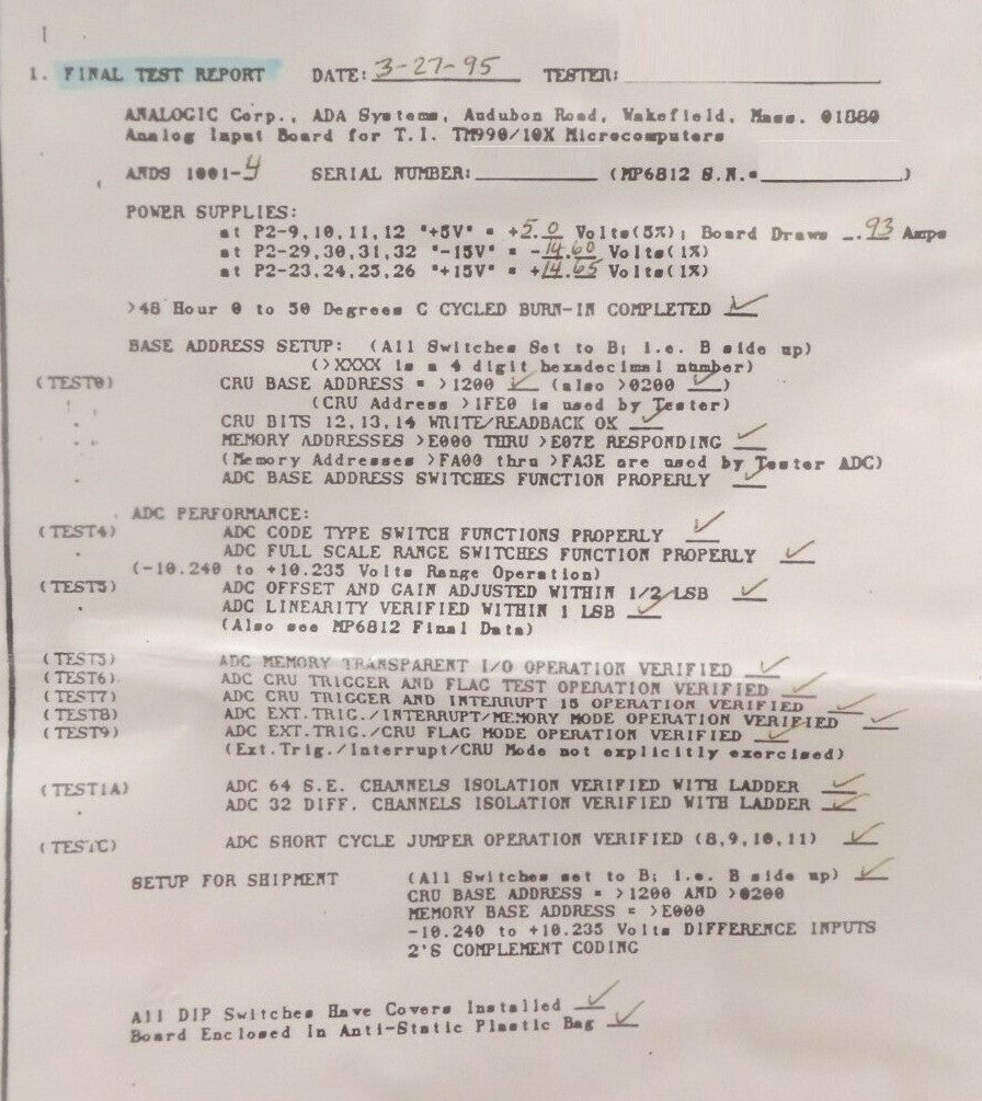This Analogic ANDS1001-4 32 Channel MUX ADC-12 BIT PCB is manufacturer refurbished surplus. Includes final test report. The physical condition is good, but there may be signs of previous use and handling.