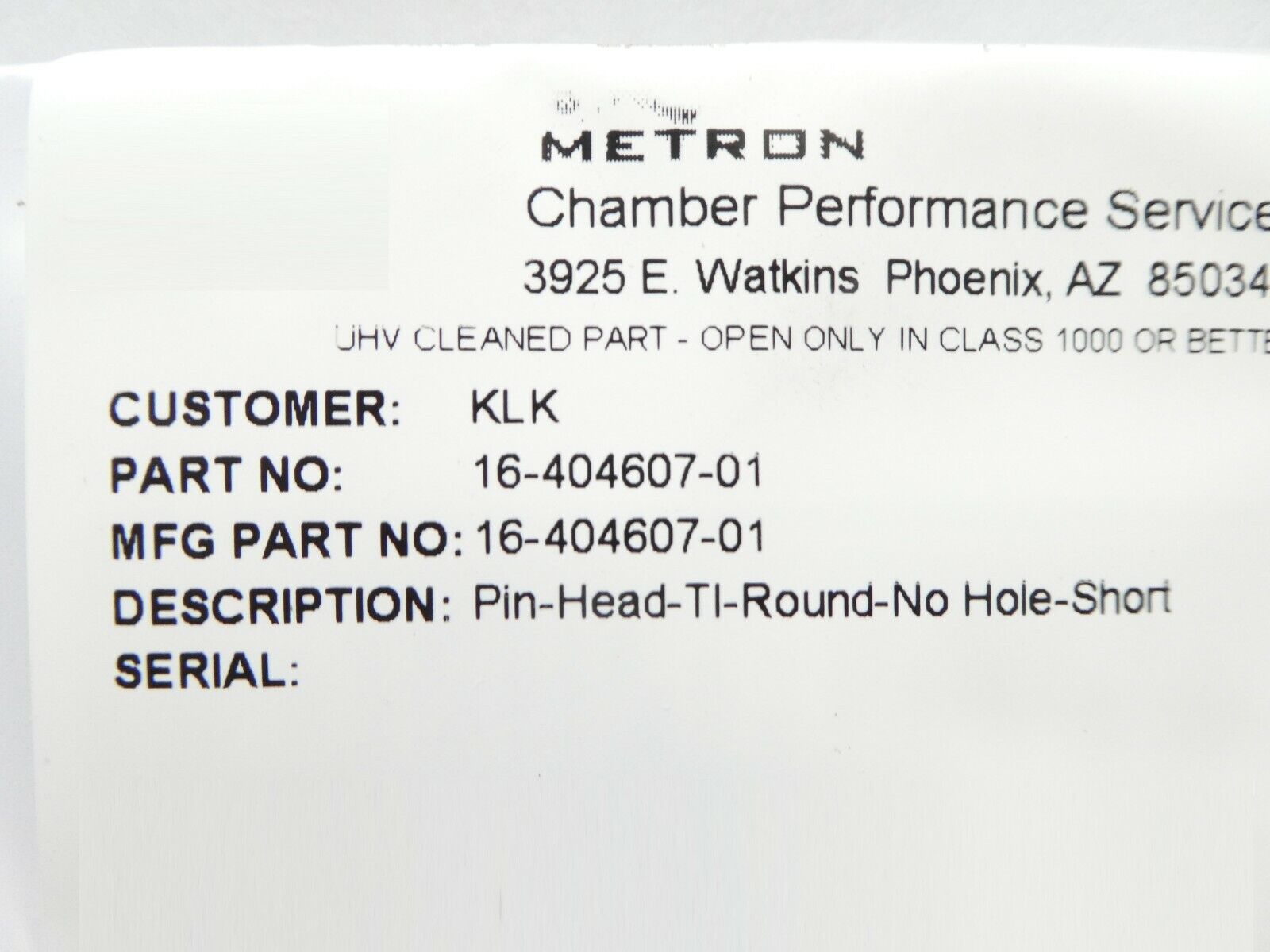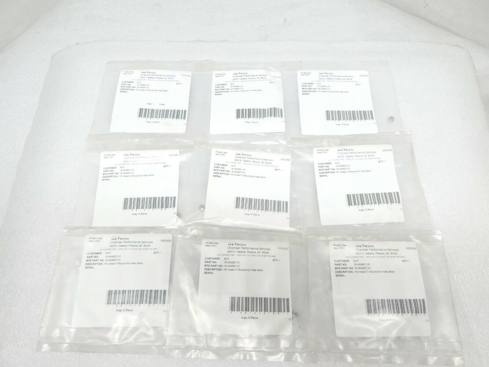 This ASM Advanced Semiconductor Materials 16-404607-01 Pin Head Ti Round No Hole Short Lot of 9 is new surplus. The physical condition is great.