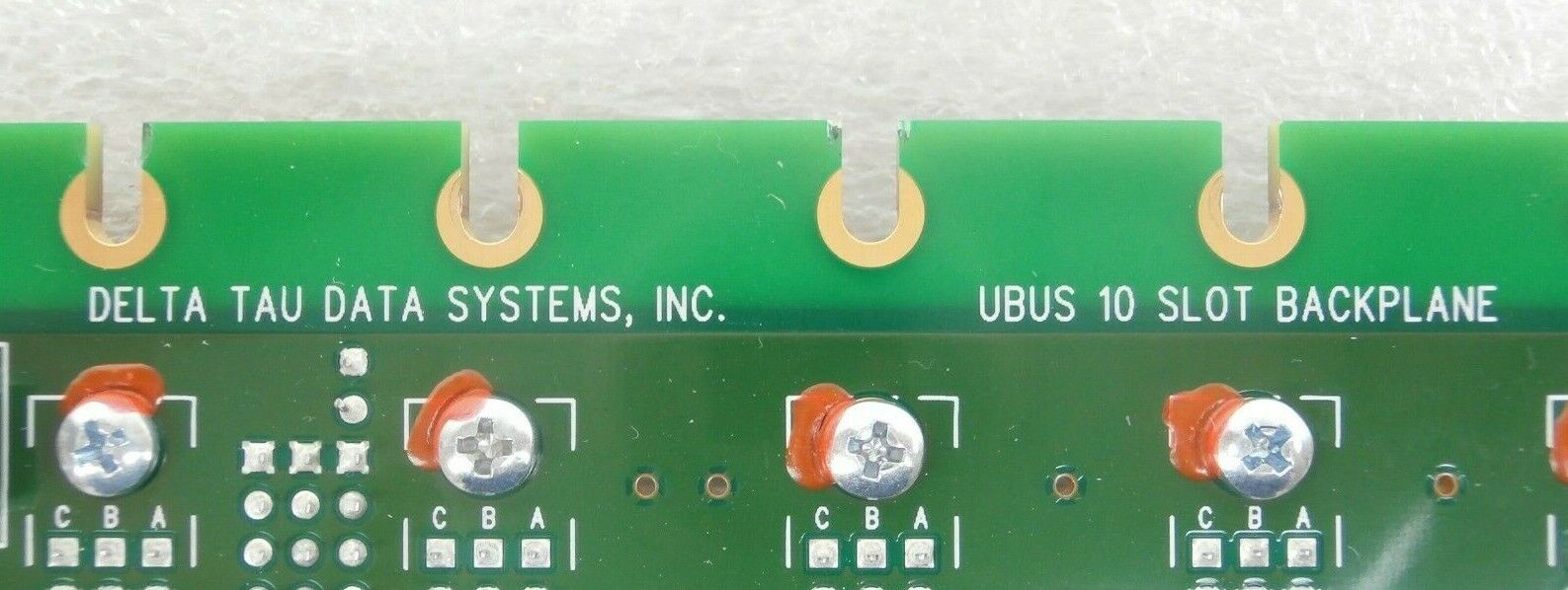 This Delta Tau Data Systems 603464-102 UBUS 10 Slot Backplane PCB is used working surplus. The physical condition is good, but there are signs of previous use and handling.