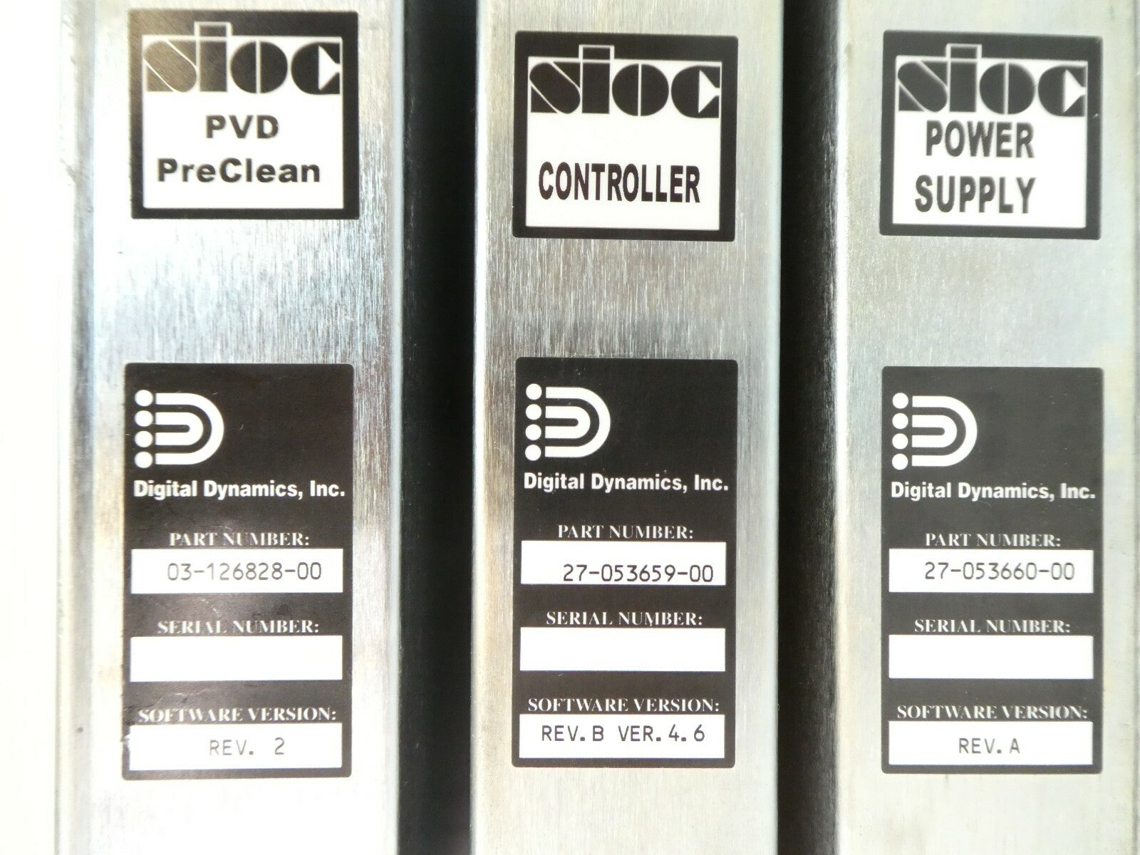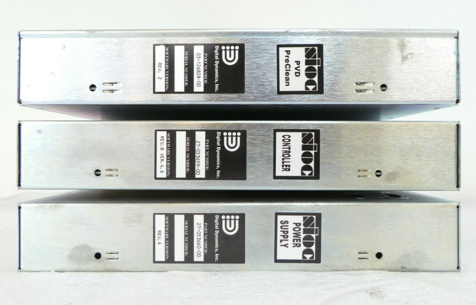 This Digital Dynamics 02-127588-00 PVD Preclean Control is used working surplus.  The case has some discoloration (see photos). The physical condition is good, but there are signs of previous use and handling.