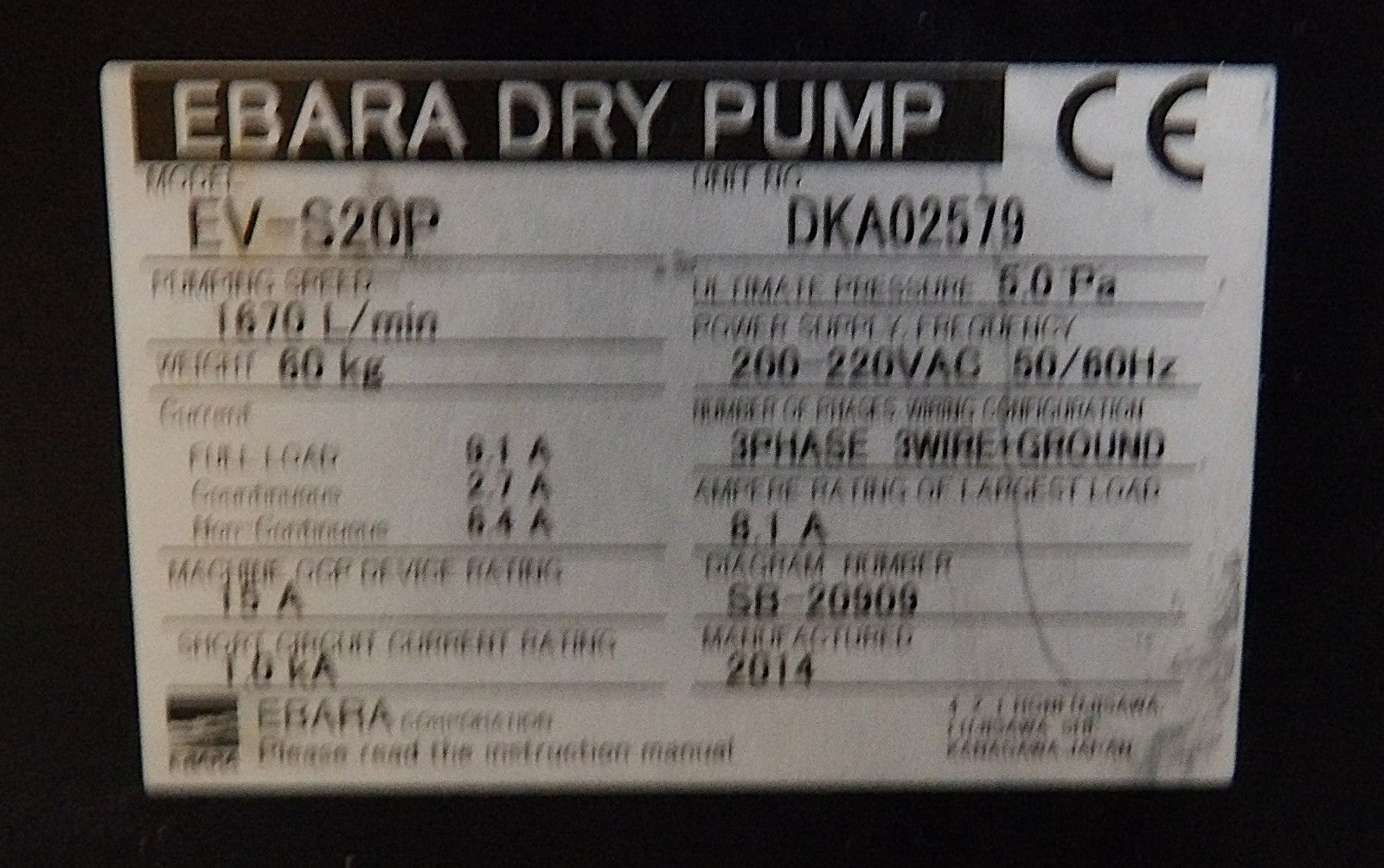 EV-S Ebara Technologies EV-S20P Dry Vacuum Pump 500762275 OEM Refurbished