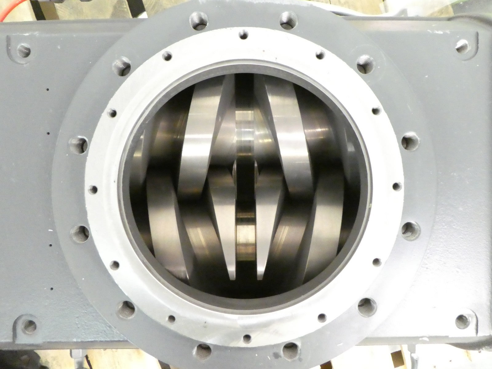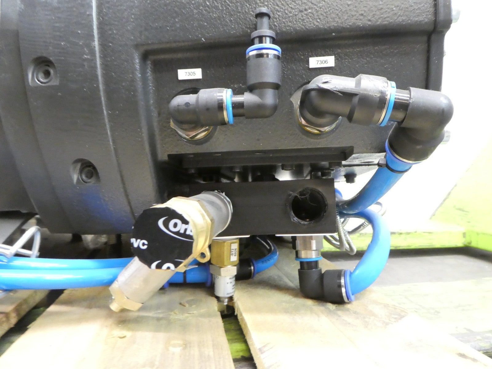 This Flowserve SIHI Boost 8000 Screw Vacuum Pump is used untested surplus and is being sold as-is. The unit has some bent plumbing, and one connector appears loose in the body (see photos). The physical condition is good and there are visible signs of previous use and handling.