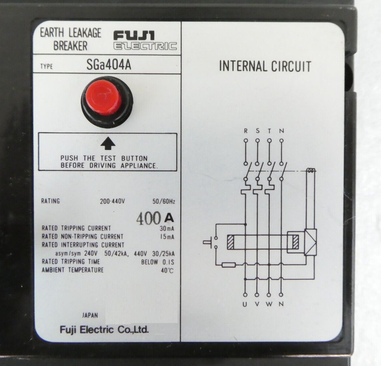 This Fuji Electric SGa404A Earth Leakage Breaker is used working surplus. The physical condition is good, but there are signs of previous use and handling.