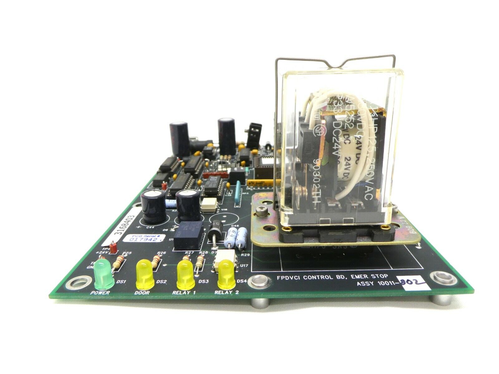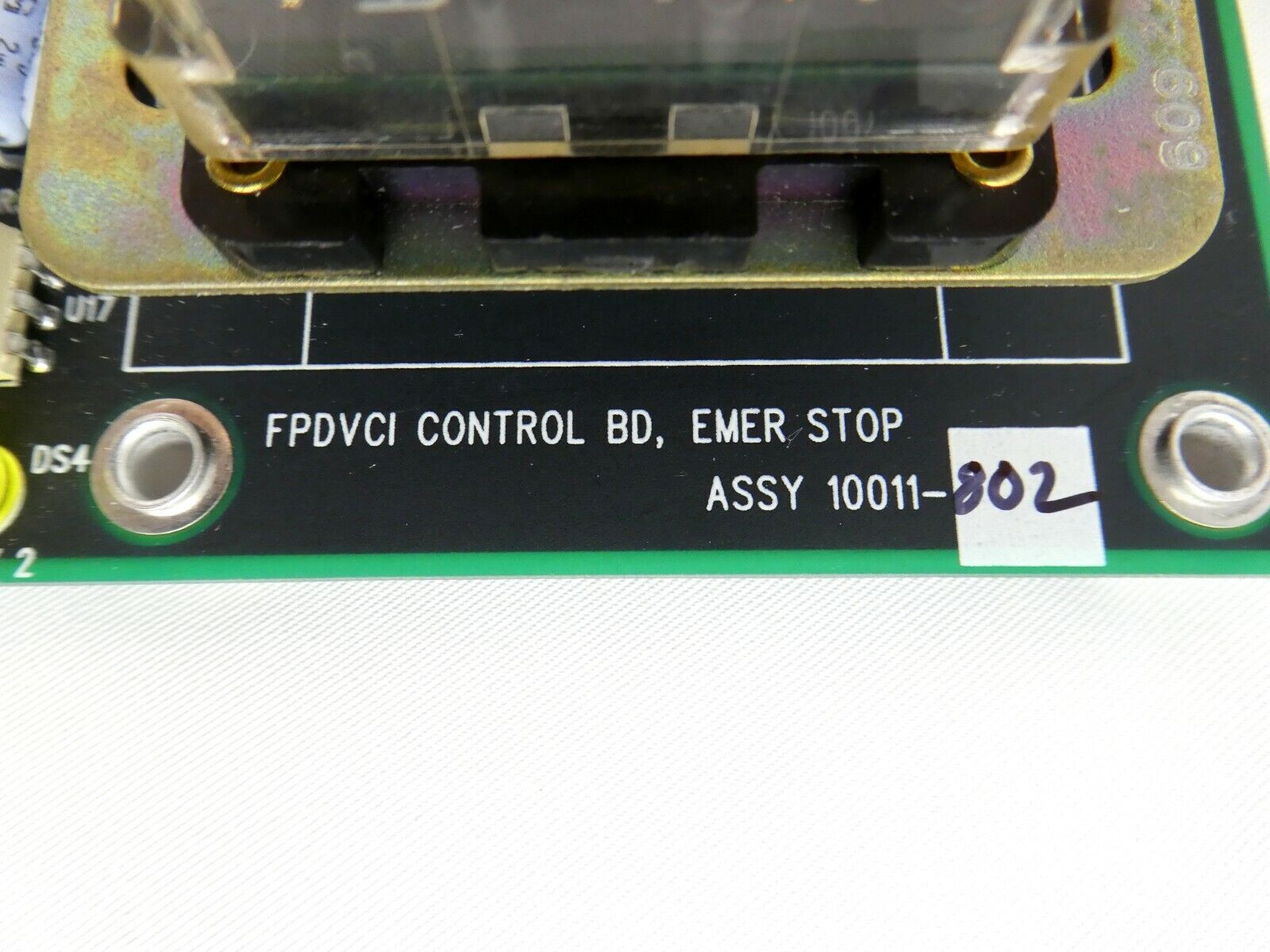 This Hine Design 10011-802 FPDVCI Control Emergency Stop PCB is used working surplus. The physical condition is good, but there are signs of previous use and handling.