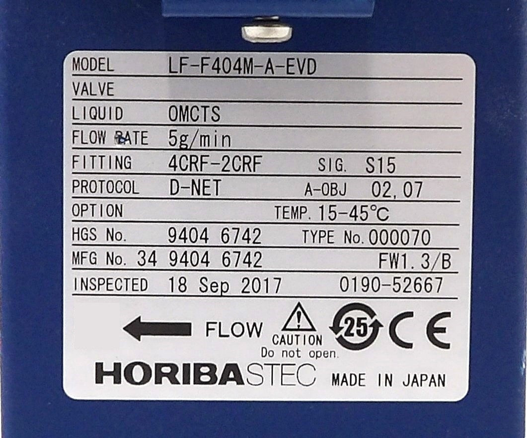 Horiba STEC LF-F404M-A-EVD Liquid Flow Meter OMCTS 5g/min AMAT Lot of 2 Working