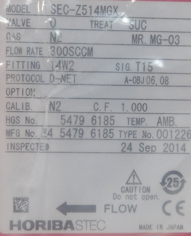 Horiba STEC SEC-Z514MGX Mass Flow Controller MFC Z500 300 SCCM H2 Lot of 2 New