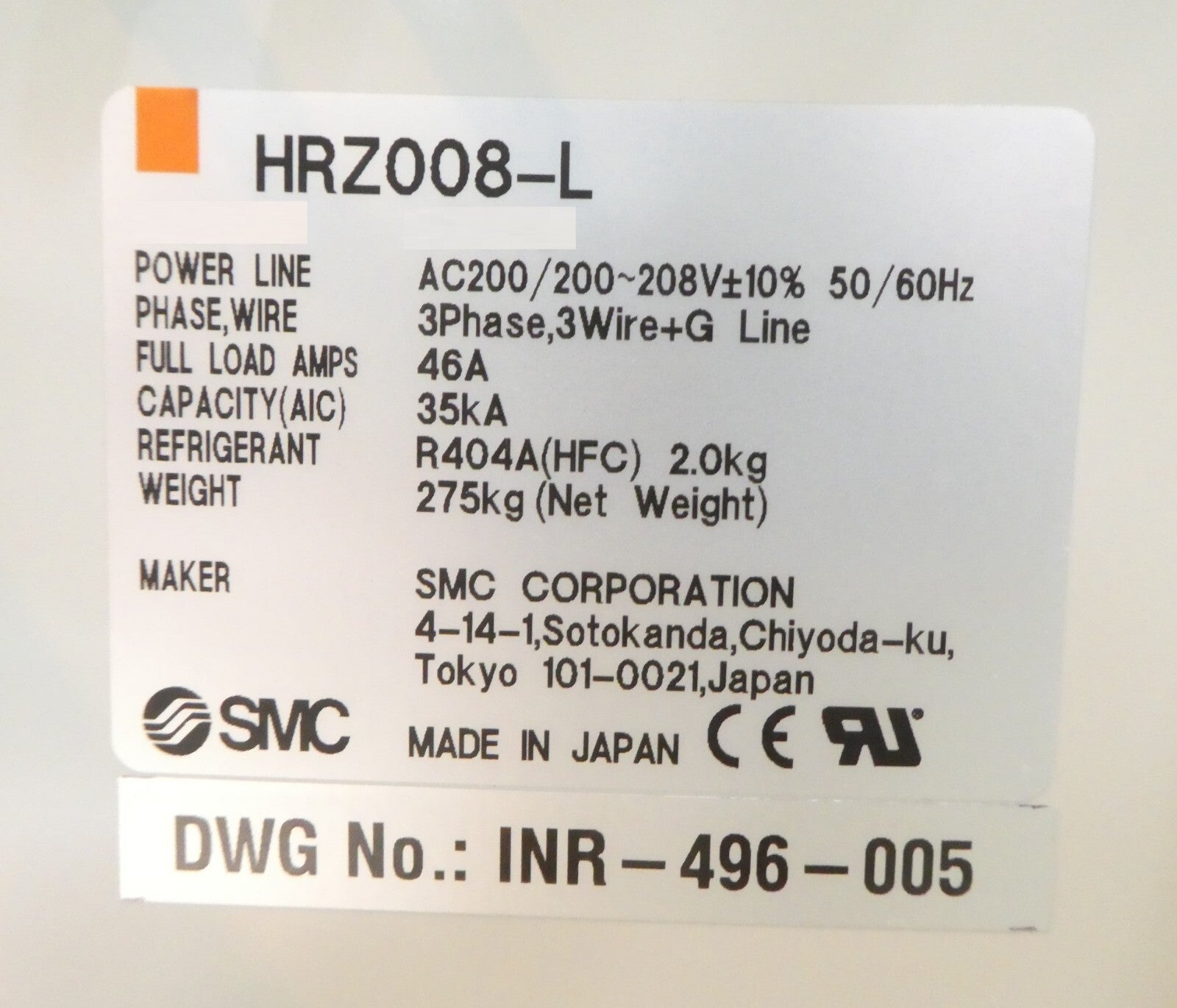 HRZ008-L SMC INR-496-005 Recirculating Thermo Chiller Dented Working Surplus