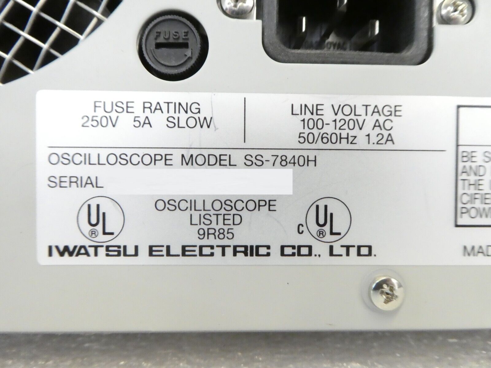 Iwatsu Electric SS-7840H Portable 470MHz Analog Oscilloscope Spare Surplus