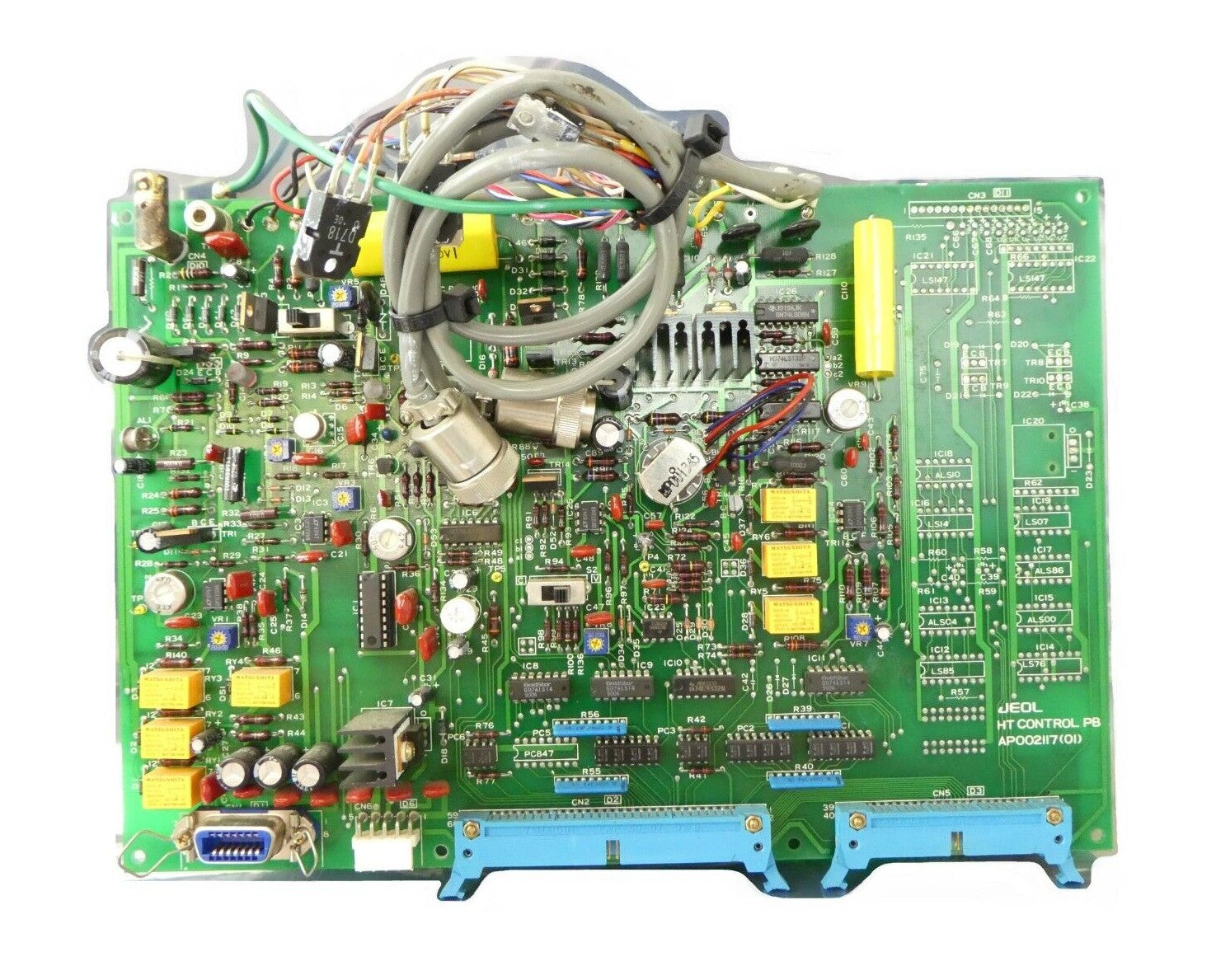 This JEOL AP002117(01) High Tension Control Board PCB is used working surplus. The physical condition is good, but there are signs of previous use and handling.