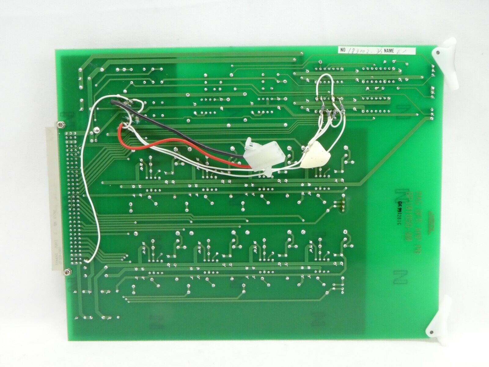 This JEOL BP101858-00 Amplifier PCB Card is used working surplus. The physical condition is good, but there are signs of previous use and handling.