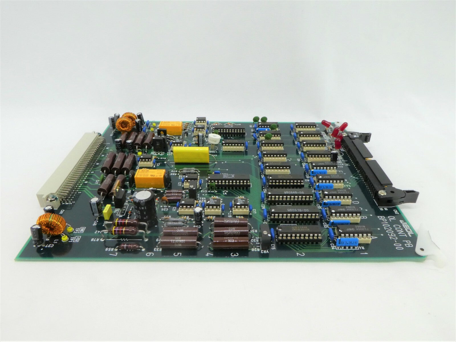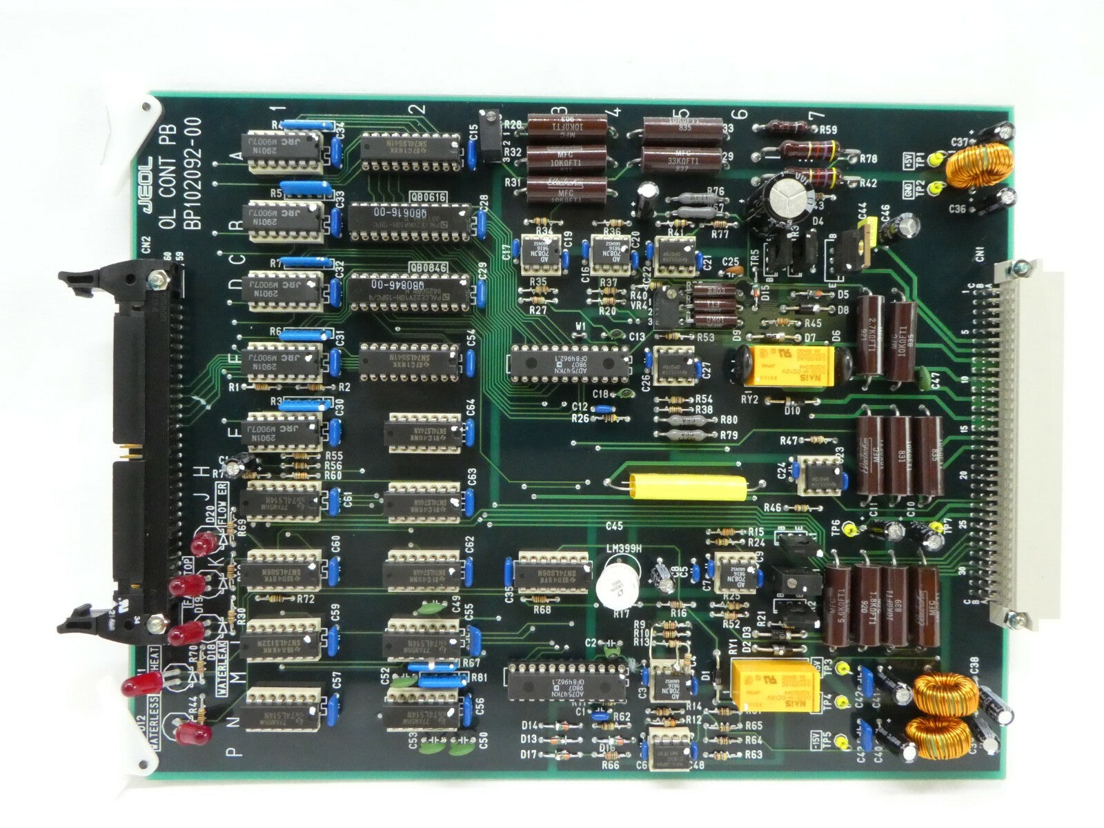 This JEOL BP102092-00 PCB Card is used working surplus. The physical condition is good, but there are signs of previous use and handling.