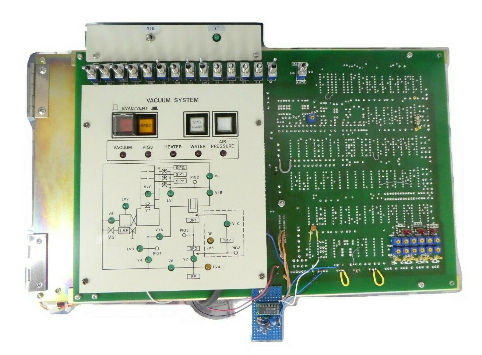 This JEOL JSM-6300F Vacuum System Operator Interface Panel is used working surplus. The physical condition is good, but there are signs of previous use and handling.