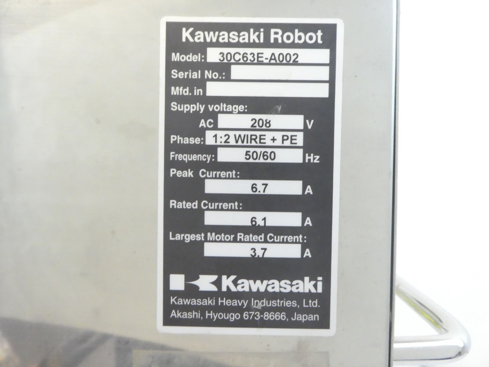 Kawasaki 30C63E-A002 Wafer Handling Robot Controller Untested Surplus