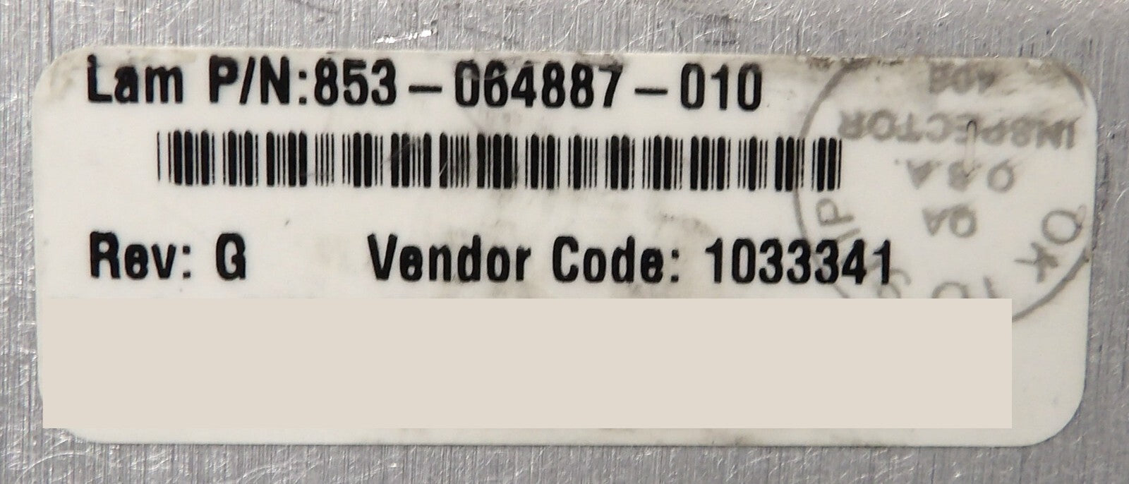 This Lam Research 853-064887-010 is working surplus. The physical condition is good, but there are signs of previous use and handling.