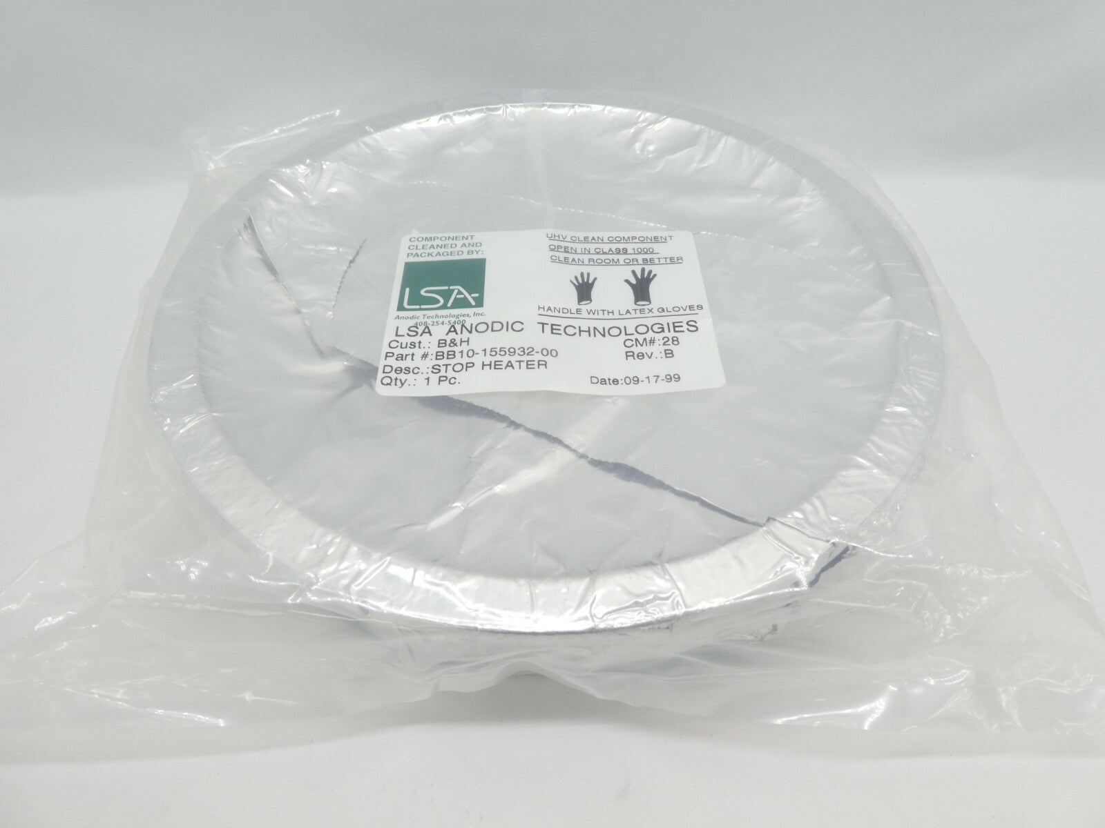 This LSA Anodic Technologies BB10-155932-00 Stop Heater Pin Plate is used working surplus. The physical condition is good, but there are signs of previous use and handling.