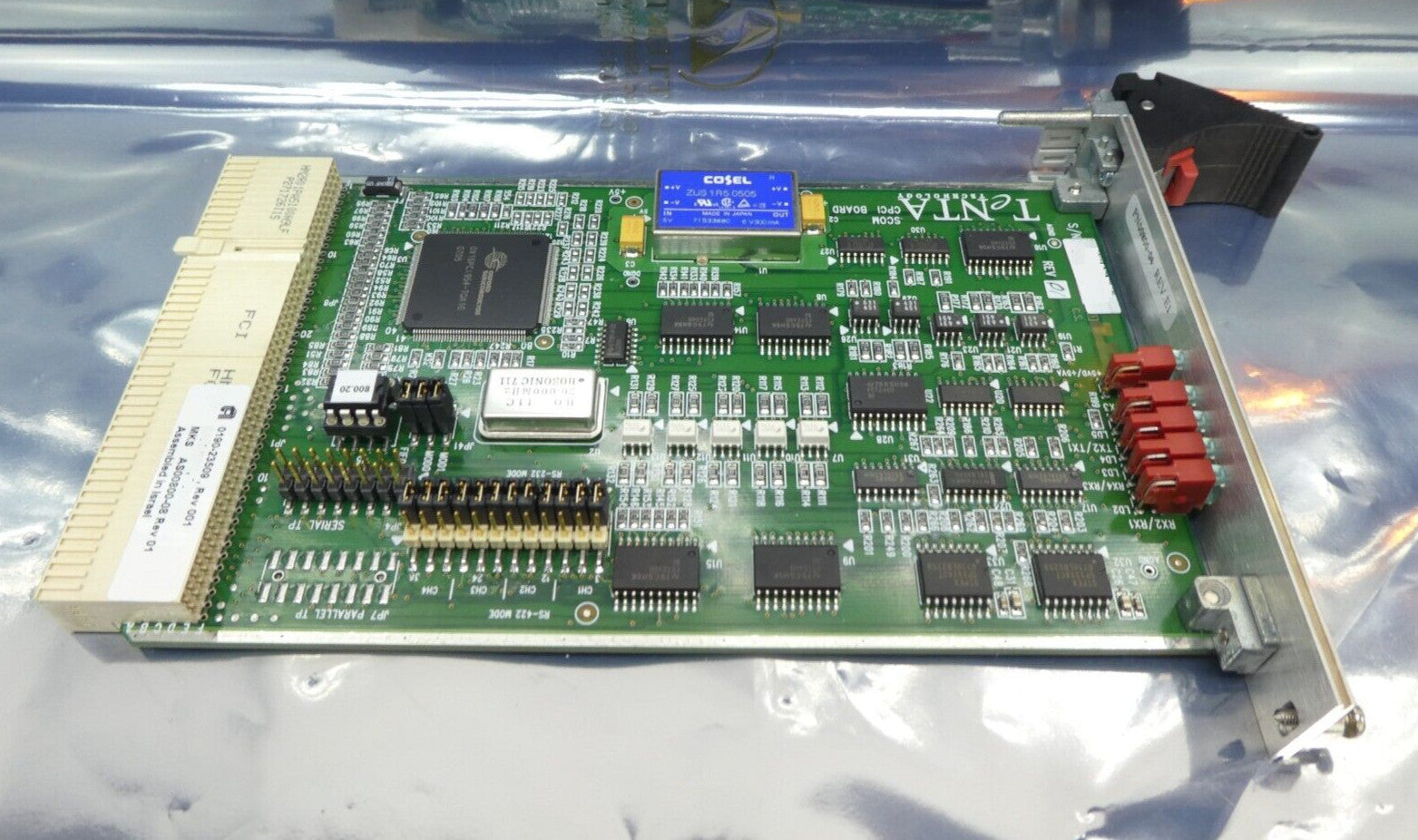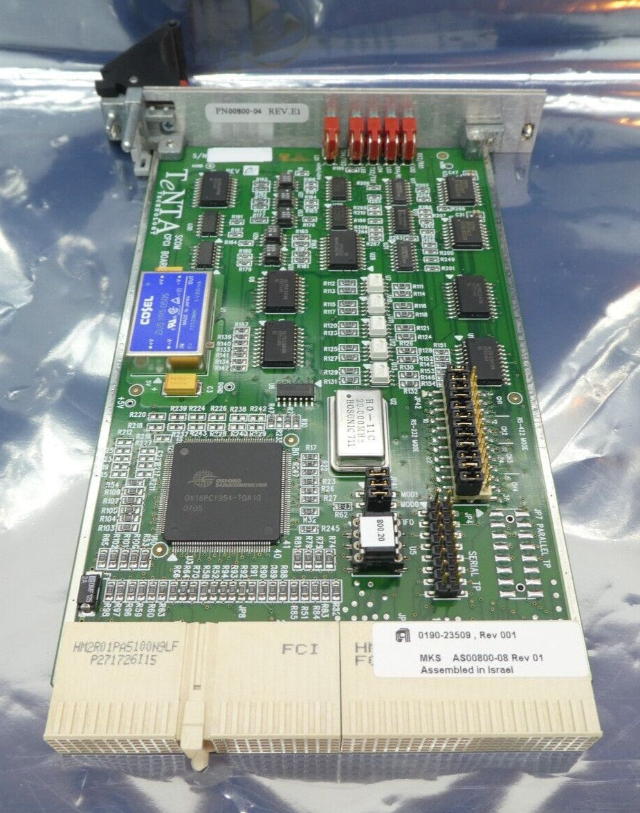 This MKS Instruments TeNTA AS00800-08 Quad Serial PCB Card is used working surplus. The physical condition is good, but there are signs of previous use and handling.
