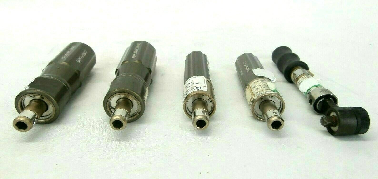 This Mountz Torque Driver 9 10 20 35 kgf.ct and 10 kgf.ct Ratchet Set of 5 is used working surplus. The physical condition is good, but there are signs of previous use and handling.