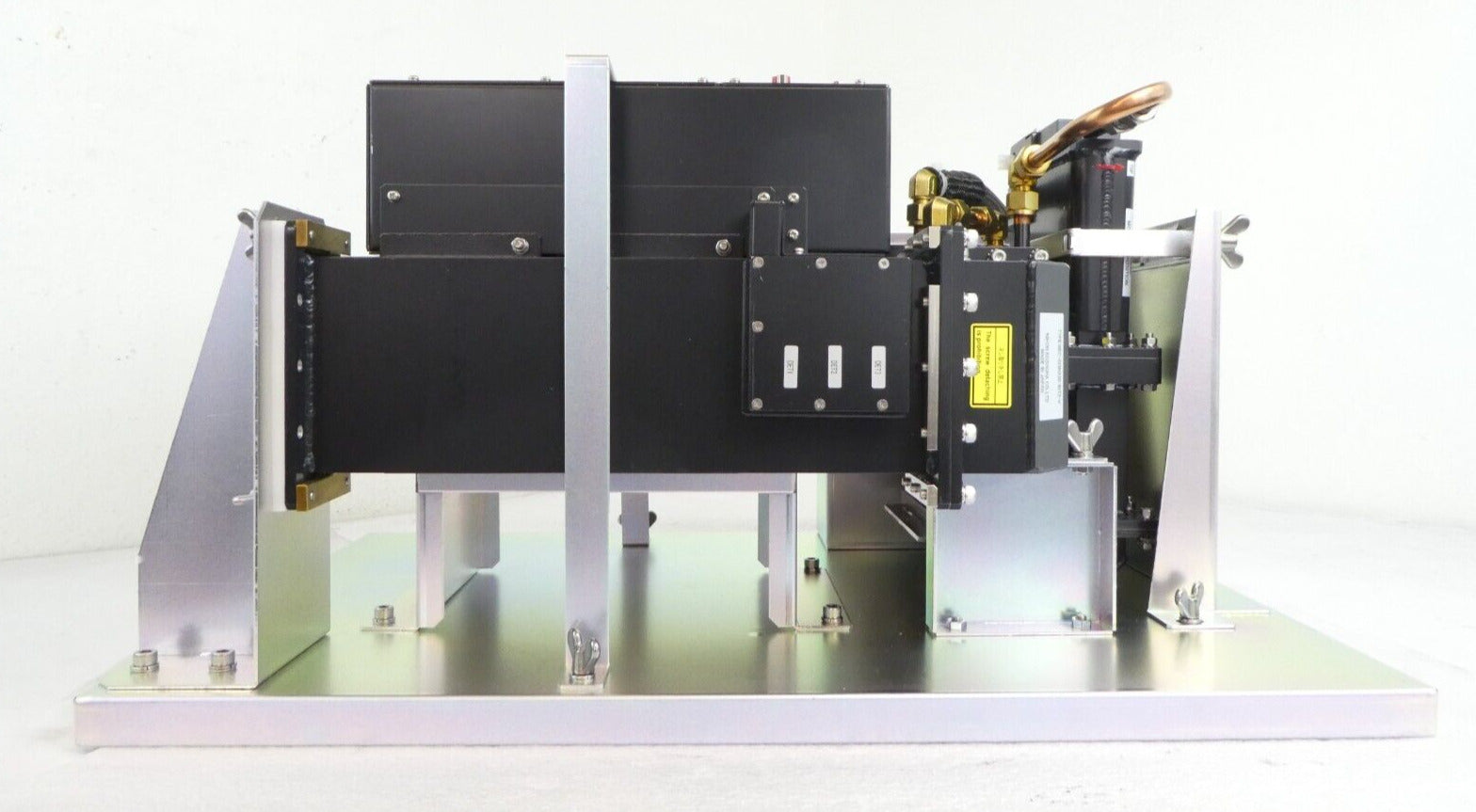 This Nihon Koshuha AMC-T20-V RF Assembly is used working surplus. The unit is mounted to a transport frame. The physical condition is good, but there are signs of previous use and handling.