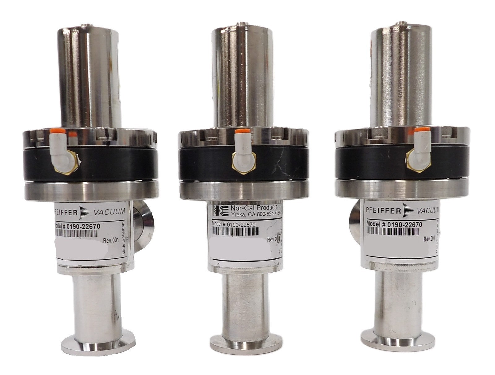 Nor-Cal Pfeiffer 0190-22670 Pneumatic Angle Valve Reseller Lot of 3 Working