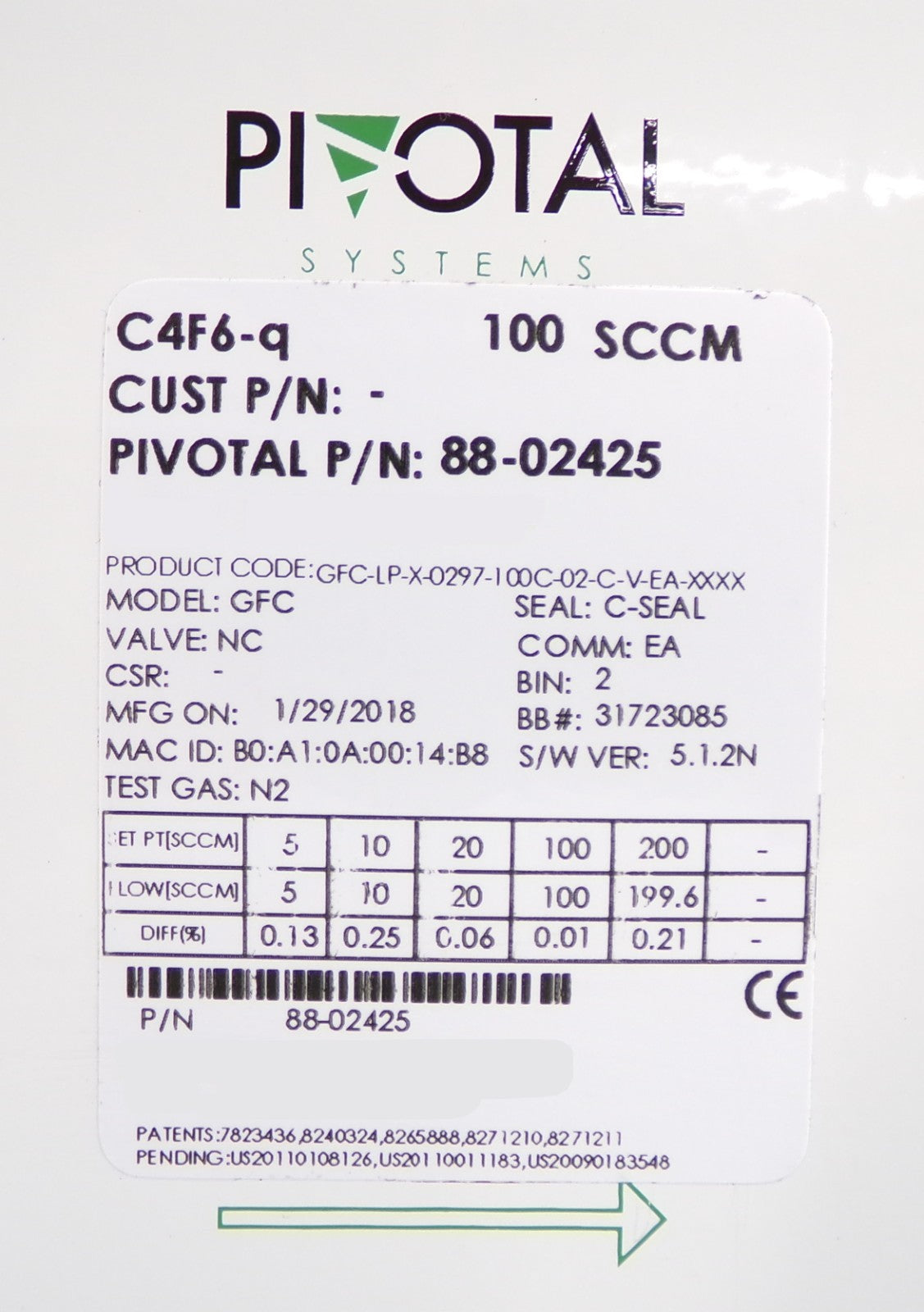 Pivotal Systems 88-02425 Mass Flow Controller MFC 100 SCCM CF4 New Surplus