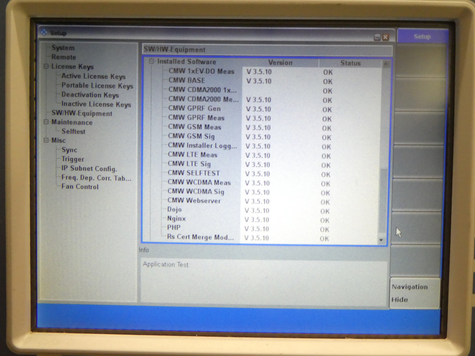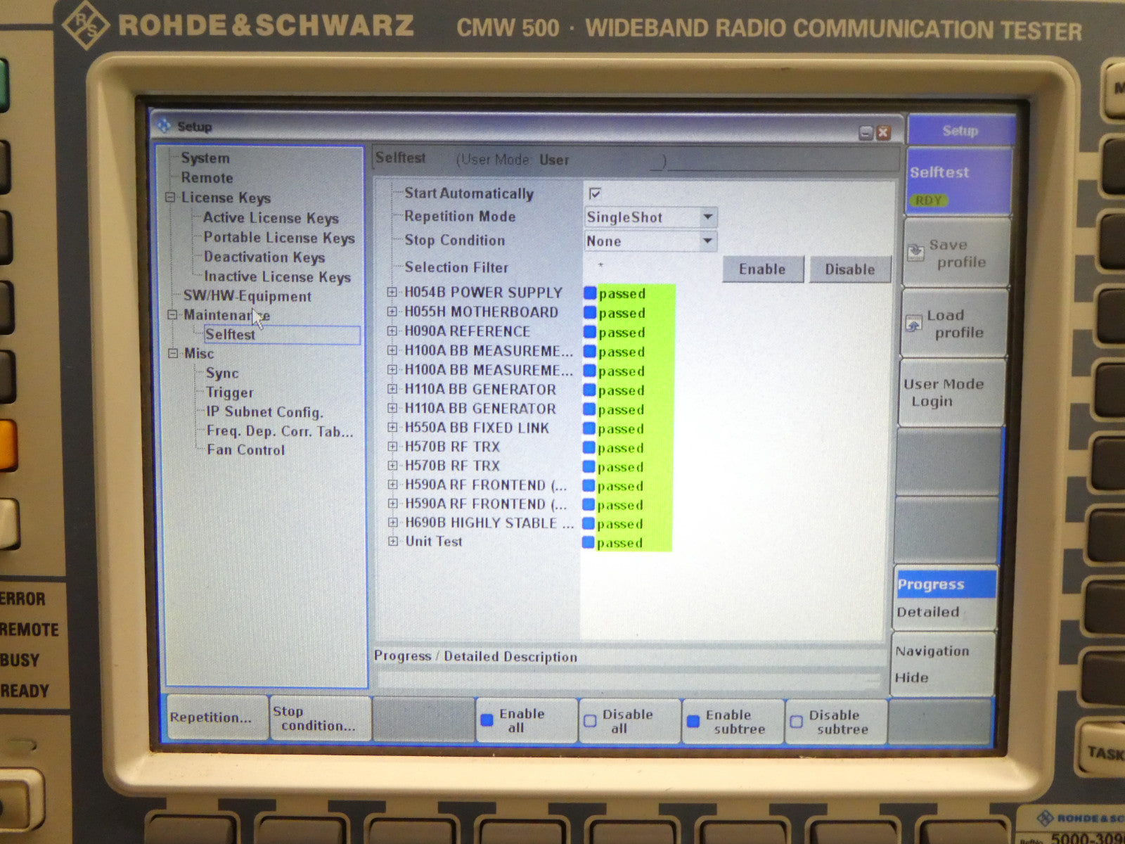 This Rohde & Schwarz 1201.0002K50 Wideband Radio Comm Tester is used working surplus. The unit powers on, boots, and passed the onboard self-tests (see photos). The physical condition is good, but there are signs of previous use and handling.