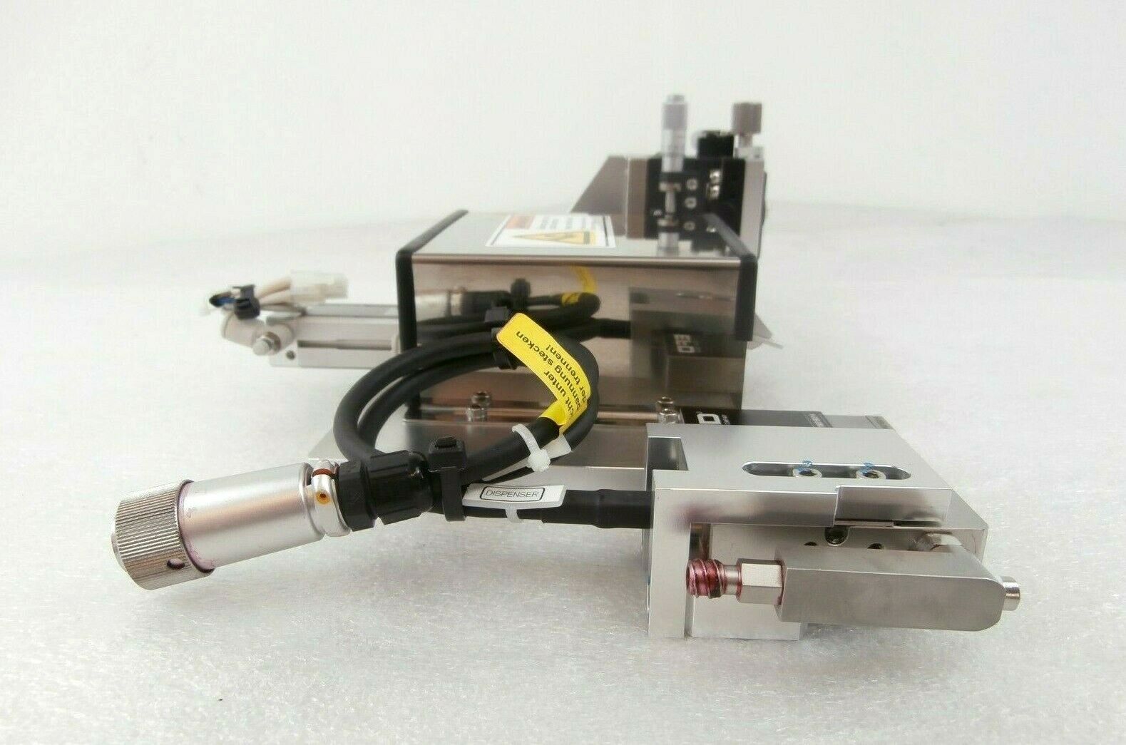 This Samsung Electronics Ink Marking Assembly EFD LV-020 PicoDot FSL-IW3MA2 is used working surplus. The physical condition is good, but there are signs of previous use and handling.