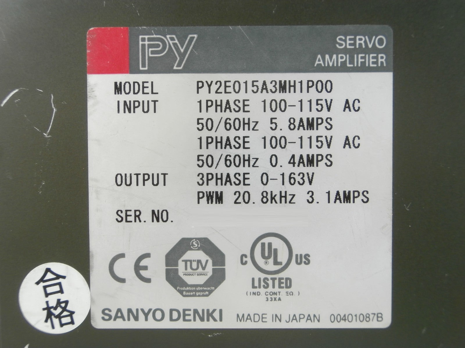 Sanyo Denki PY2E015A3MH1P00 Servo Amplifier BL Super PY Used Working