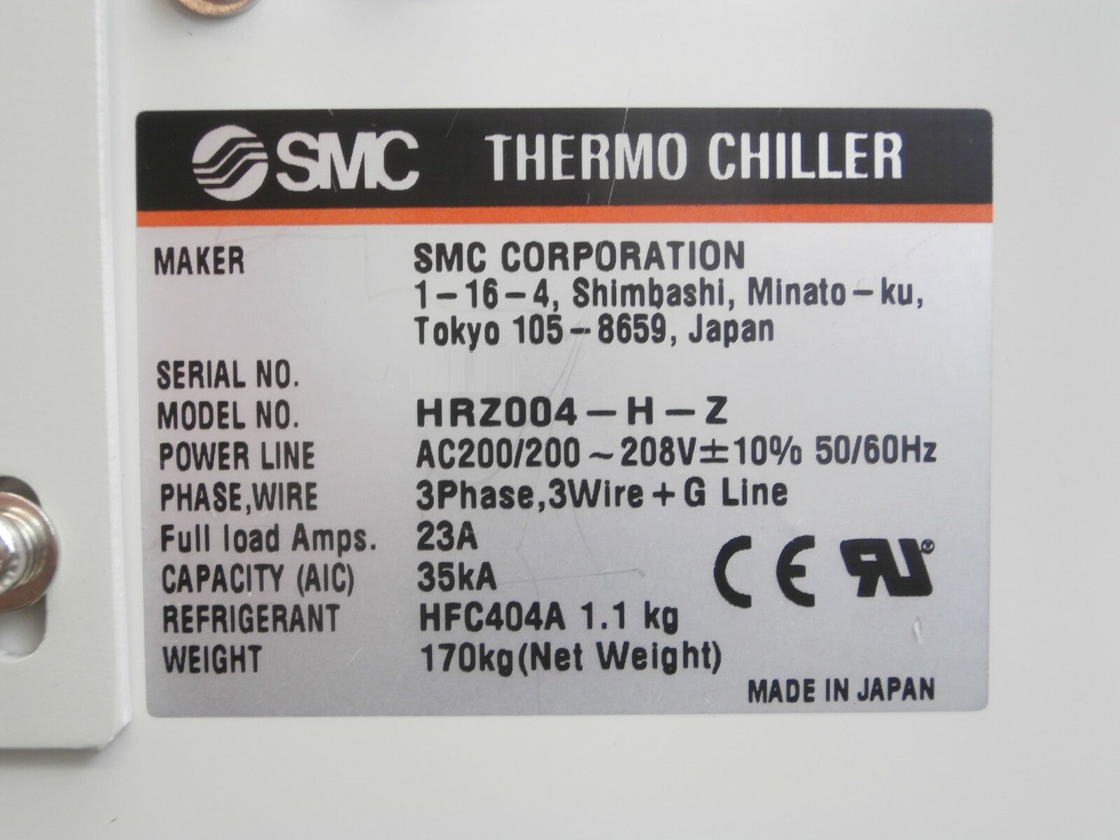 SMC HRZ004-H-Z Series HRZ THERMO CHILLER Galden HT200 Working Surplus