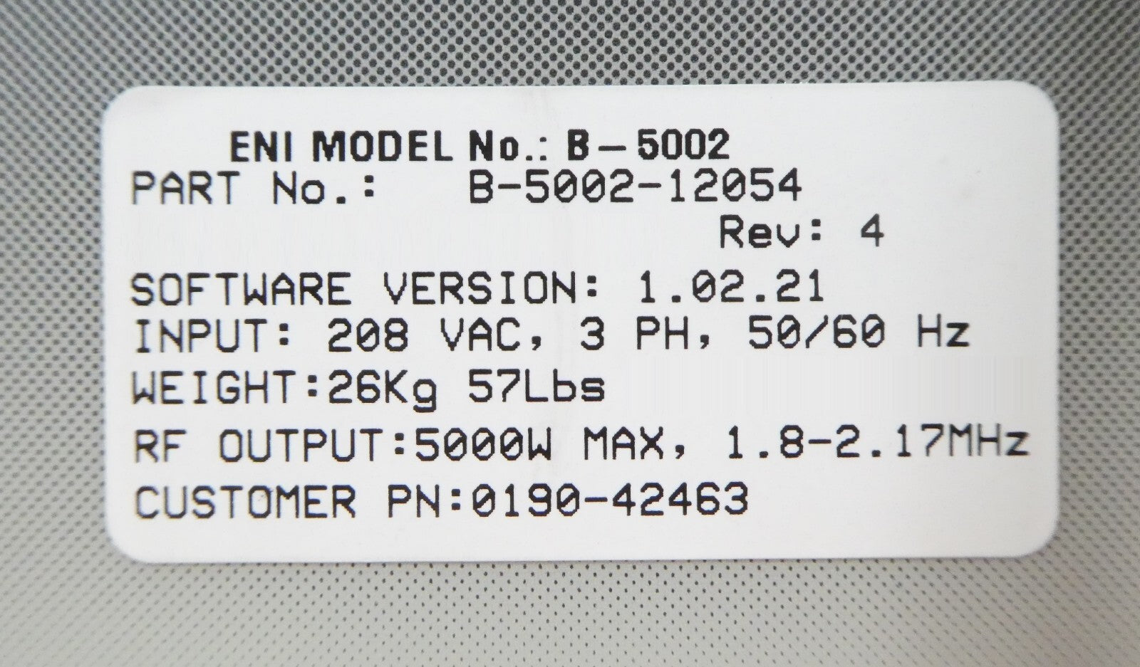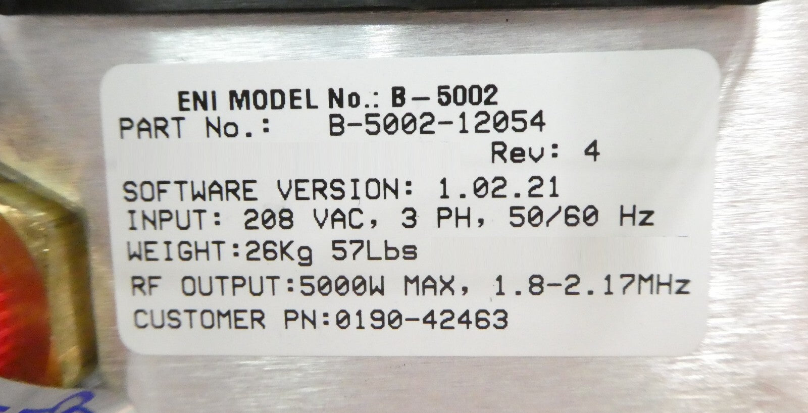 Spectrum B-5002 ENI Power Systems B-5002-12054 RF Generator 1.985MHz Untested