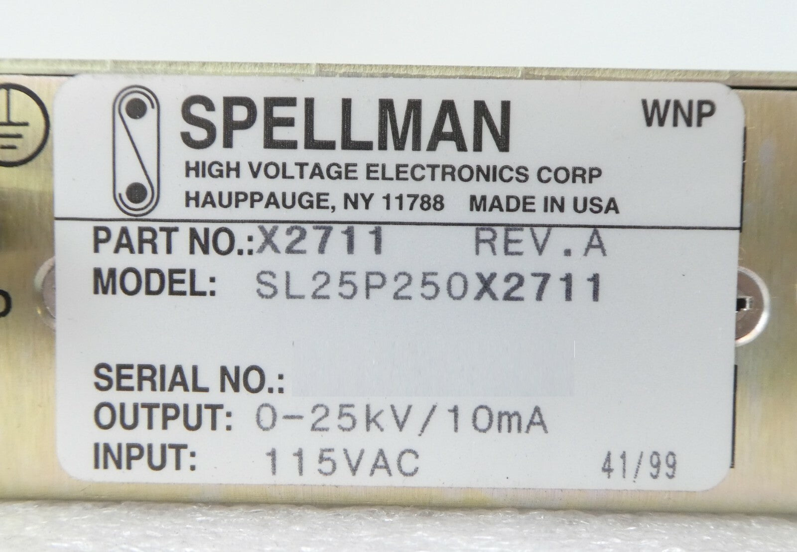 Spellman SL25P250X2711 SL300 High Voltage Power Supply X2711 Varian F1384001 New