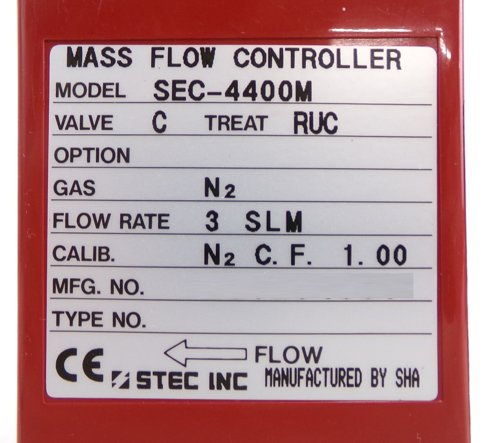 • Range/Gas: 1,2,3,50,100,500 SLM, N2