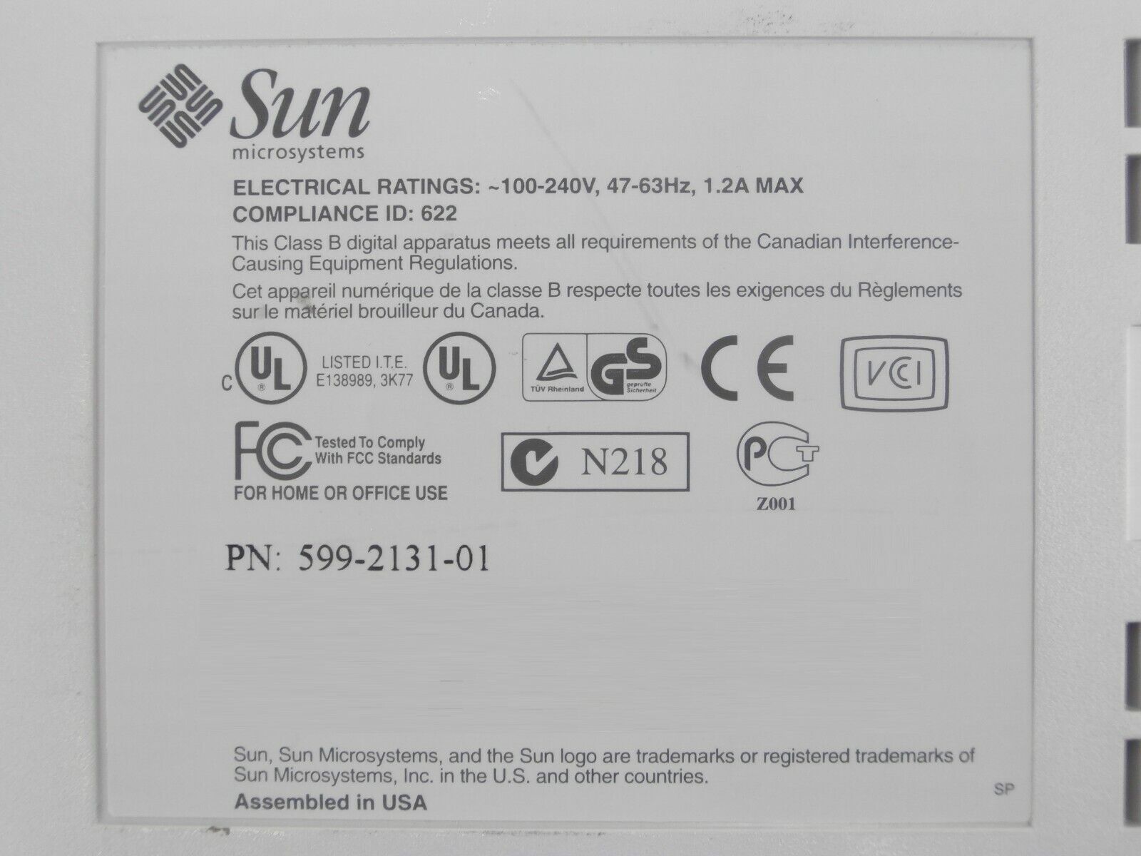 • Part No: 599-2131-01