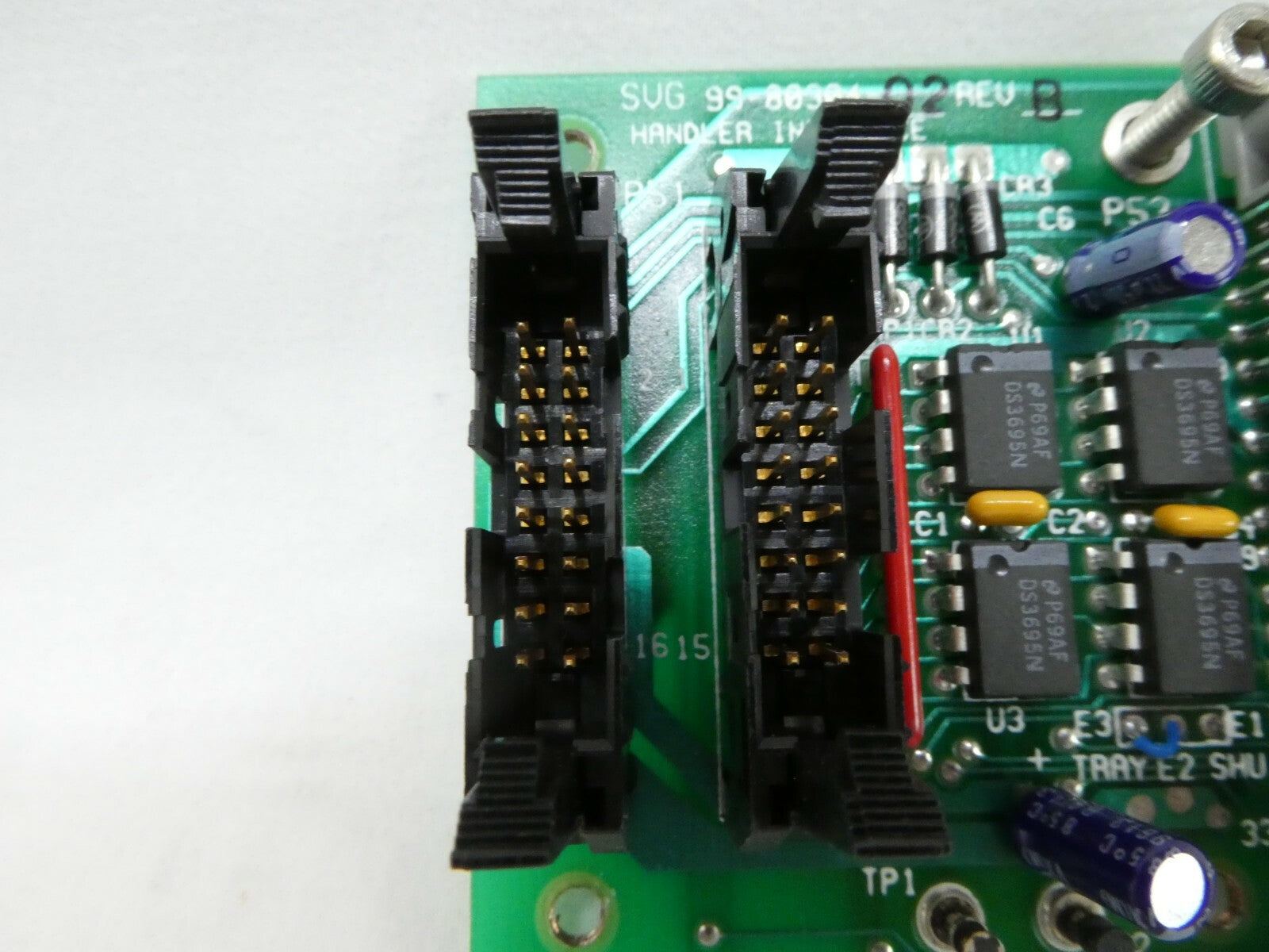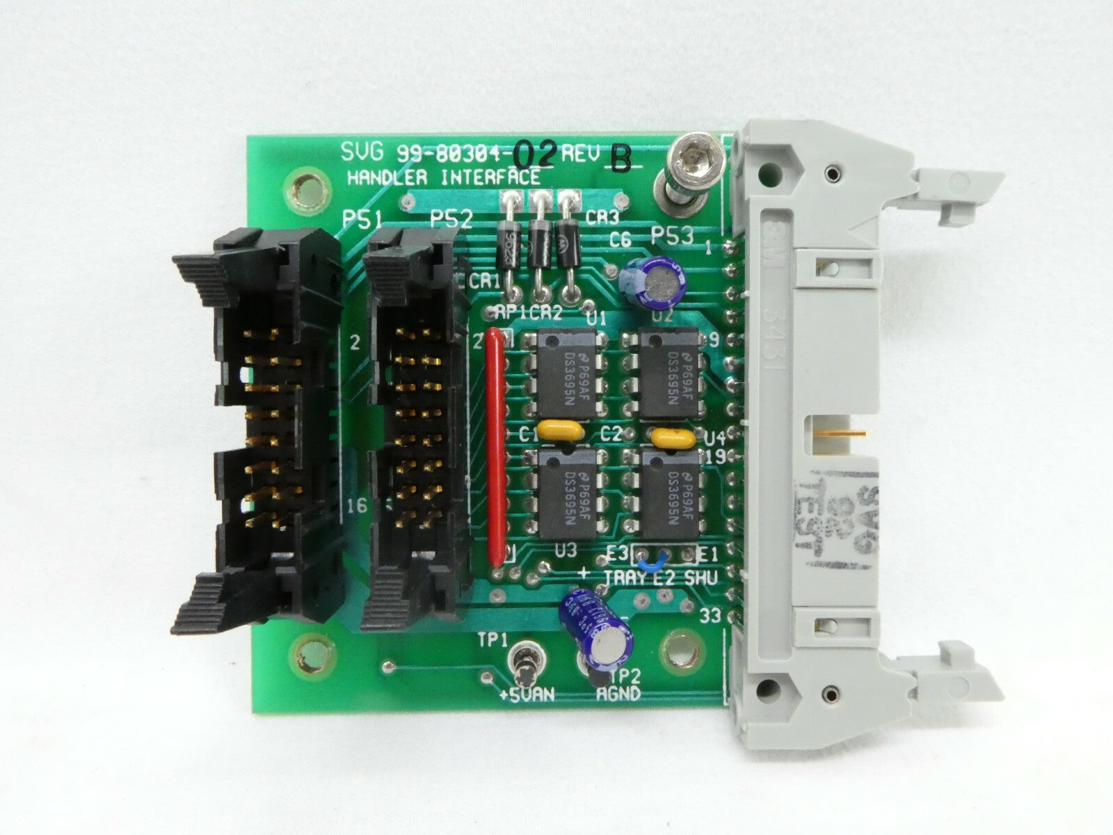 This SVG Silicon Valley Group 99-80304-02 Handler Interface Board PCB is used working surplus. The physical condition is good, but there are signs of previous use and handling.