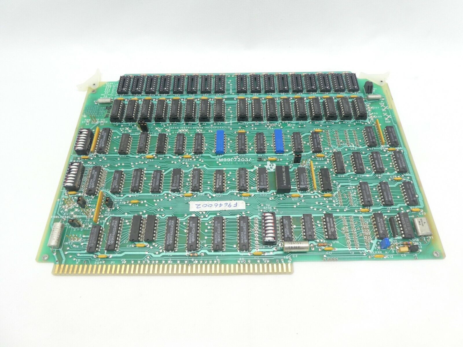 This Texas Instruments 1600252-0005 RAM Module PCB Card is used working surplus. The physical condition is good, but there are signs of previous use and handling.
