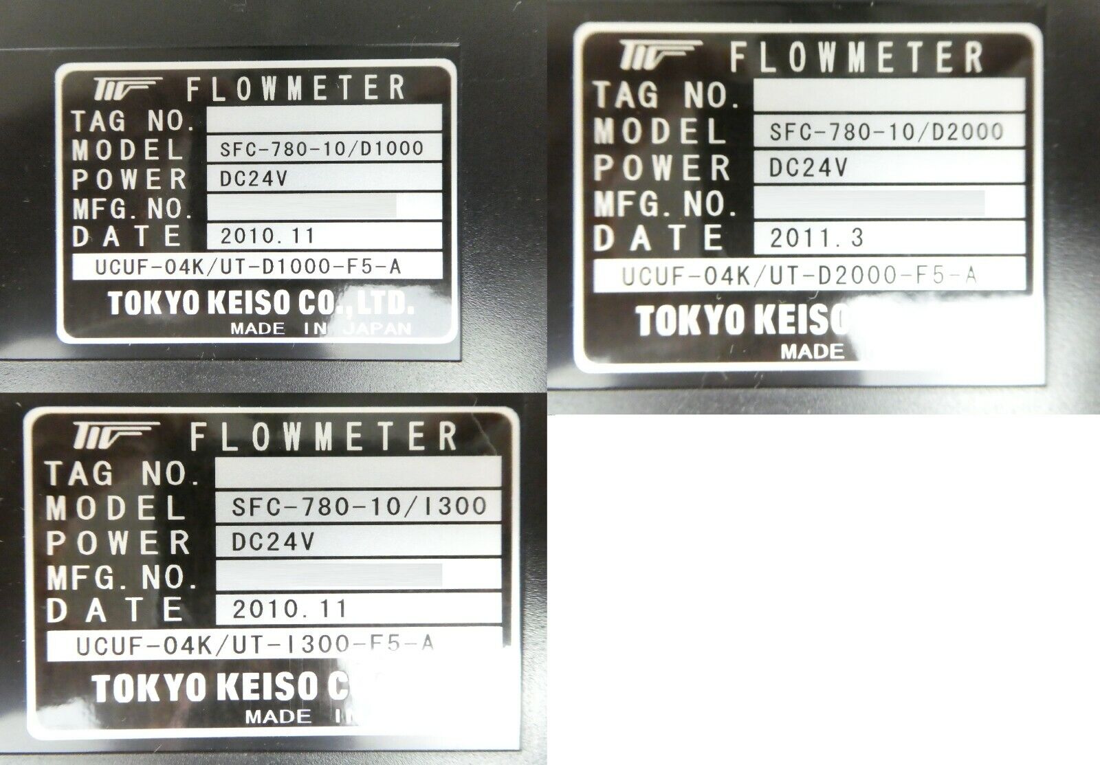 This Tokyo Keiso SFC-780 Flowmeter Lot of 4 is used working surplus. The physical condition is good, but there are signs of previous use and handling.