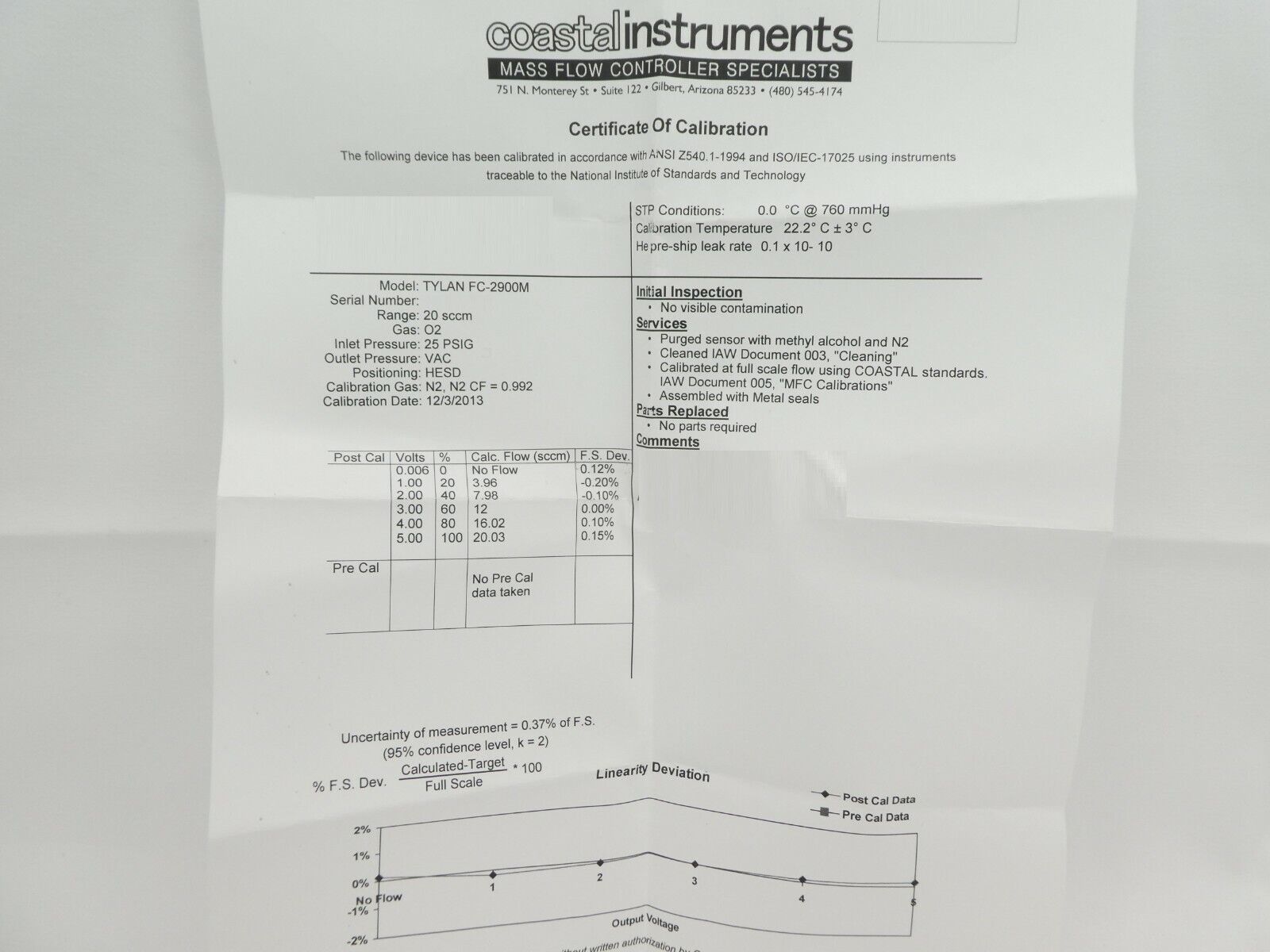 • Includes Calibration Data Sheet