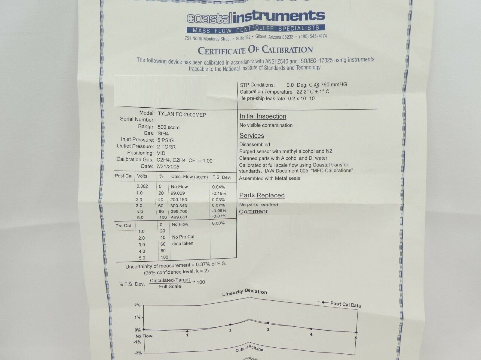 • Includes Calibration Data Sheet