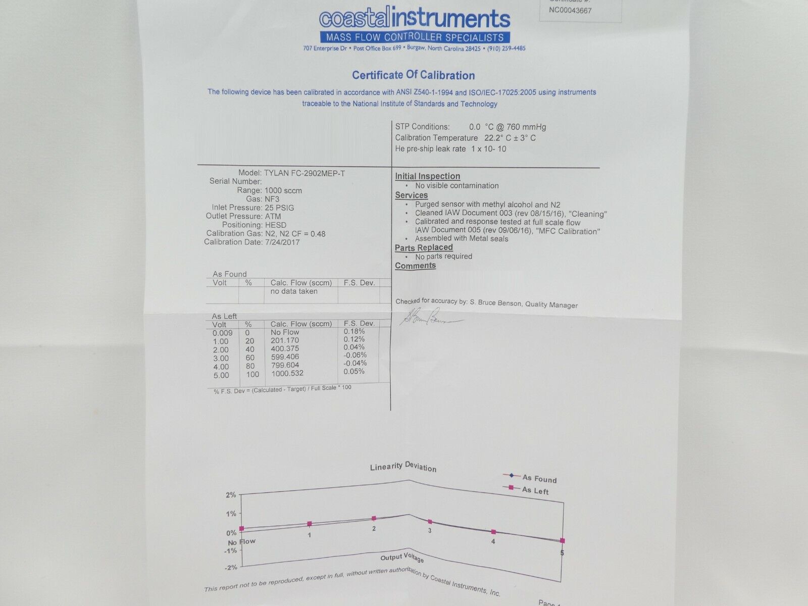 • Range/Gas: 1 SLM, NF3