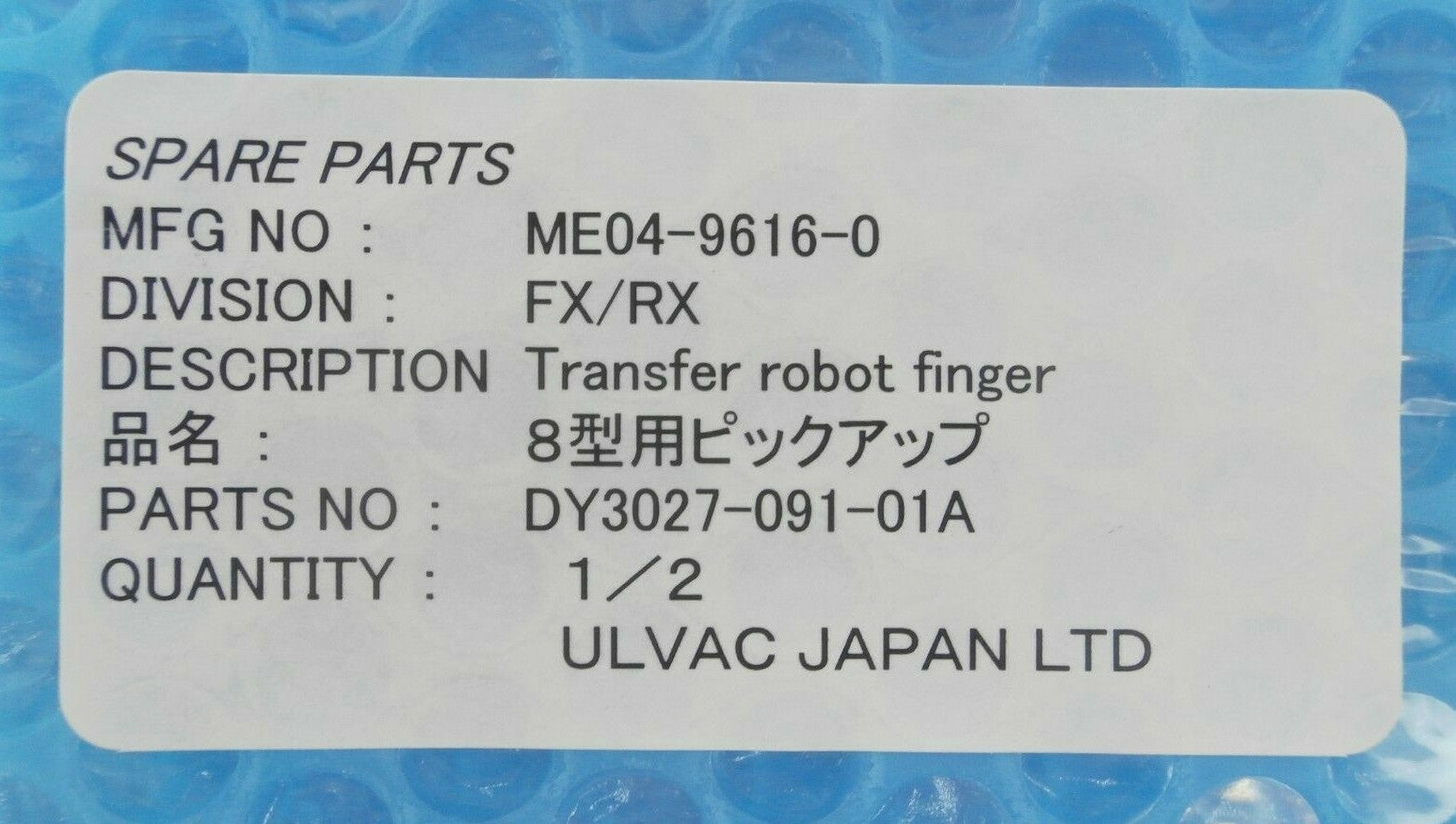 This Ulvac DY3027-091-01A Robot Transfer Finger ME04-9616-0 End Effector is new surplus. The physical condition is great.
