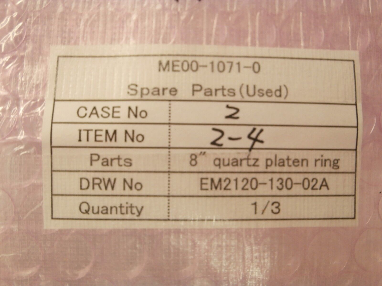 This Ulvac Technologies EM2120-130-02A 8" Quartz Platen Ring ZX-1000 200mm is used working surplus. The physical condition is good, but there are signs of previous use and handling.