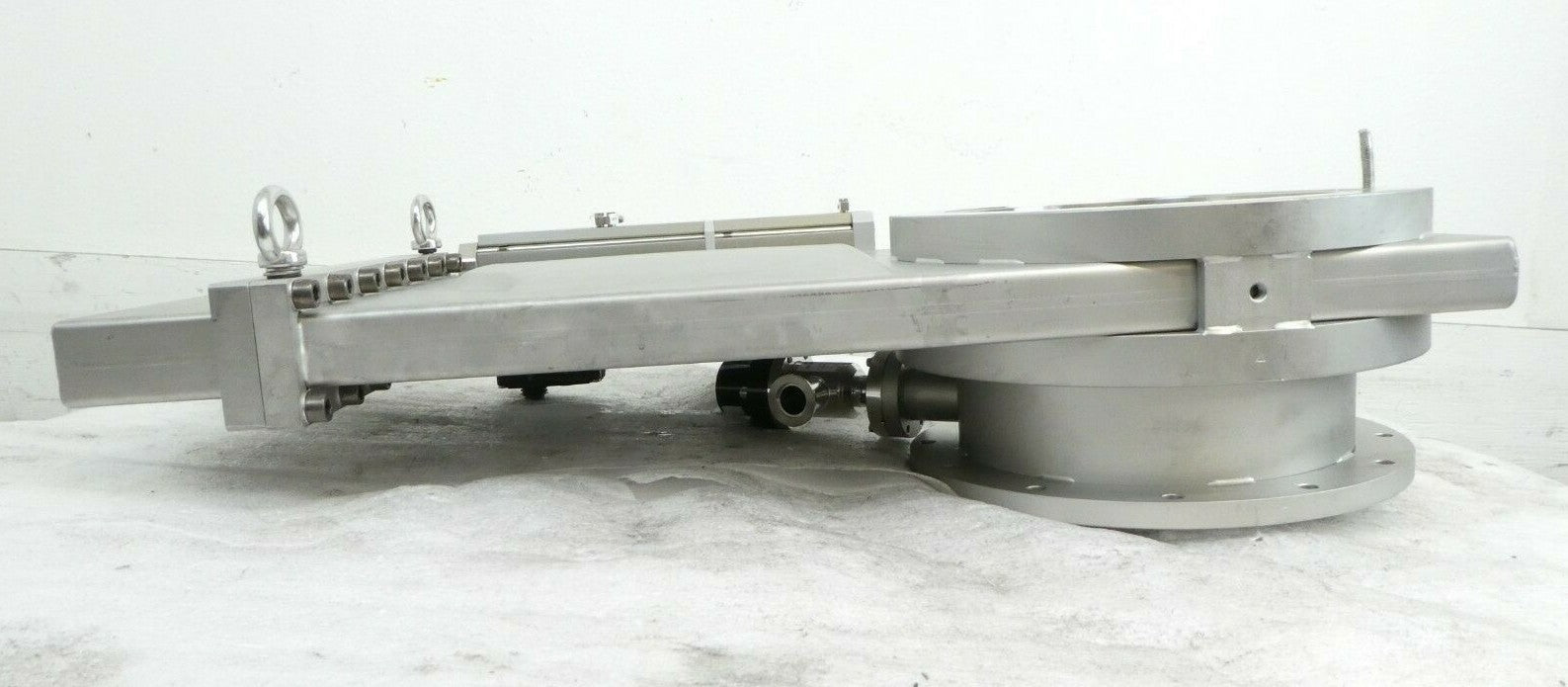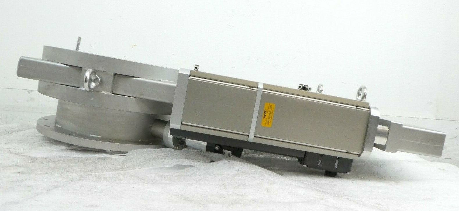 This VAT 10848-UE28-BJO1 UHV Ultra High Vacuum Chamber Gate Valve is used working surplus. The unit has a screw that appears to be stuck (see photos). The physical condition is good, but there are signs of previous use and handling.