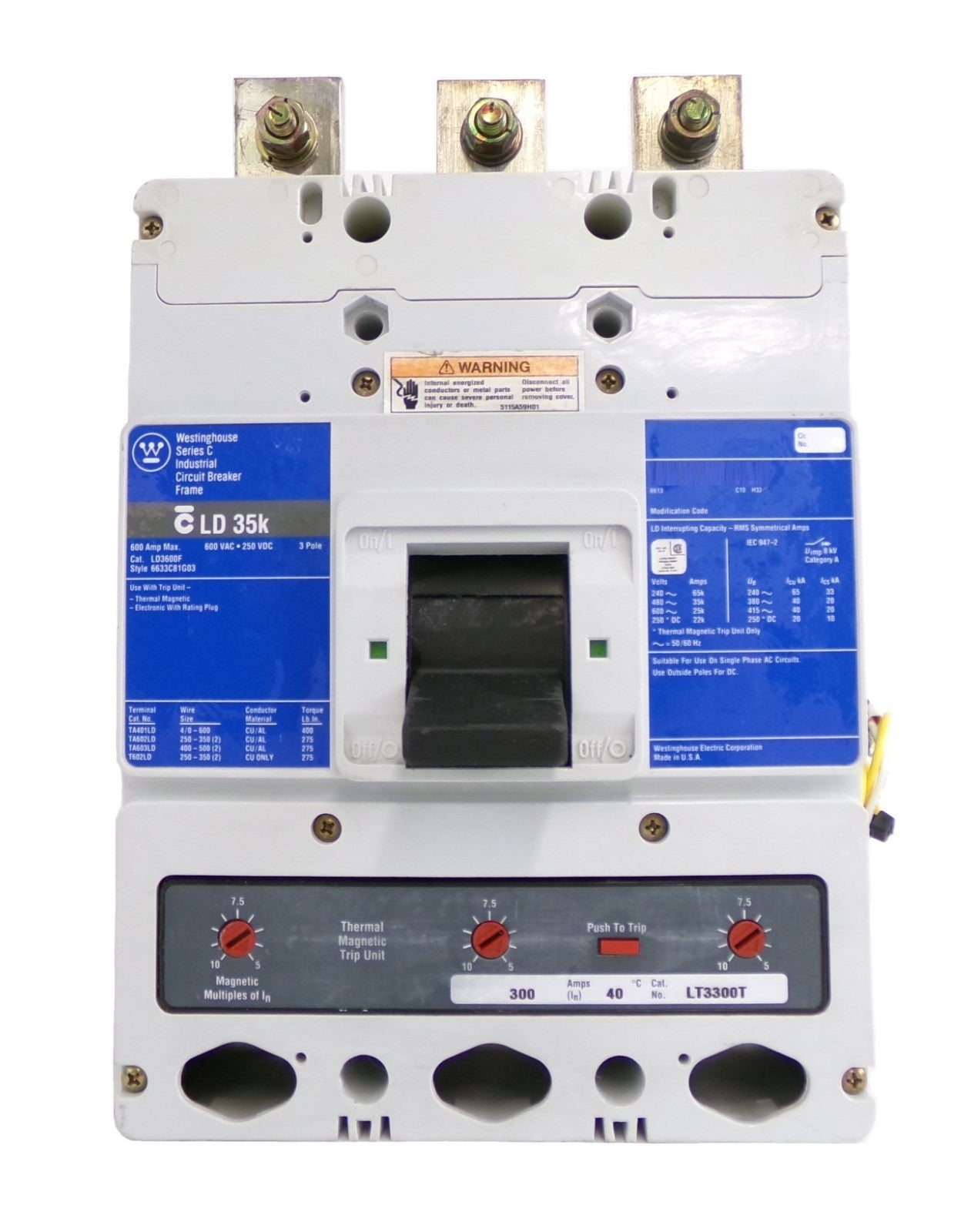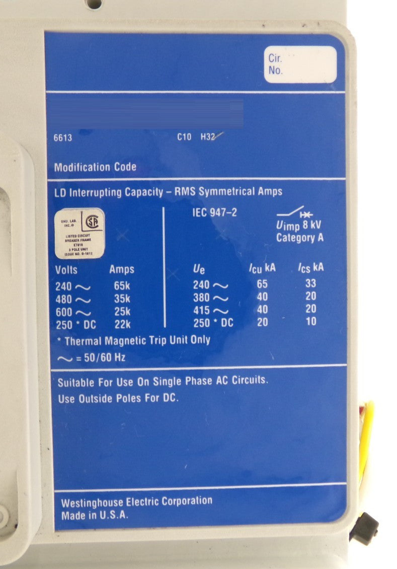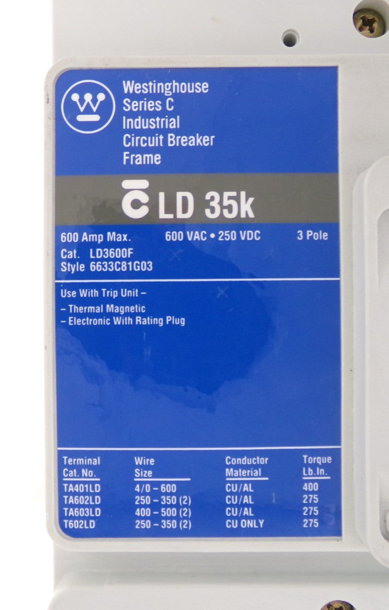 Westinghouse 6633C81G03 LD 35k 3-Pole Circuit Breaker LD3600F LT3300T Working
