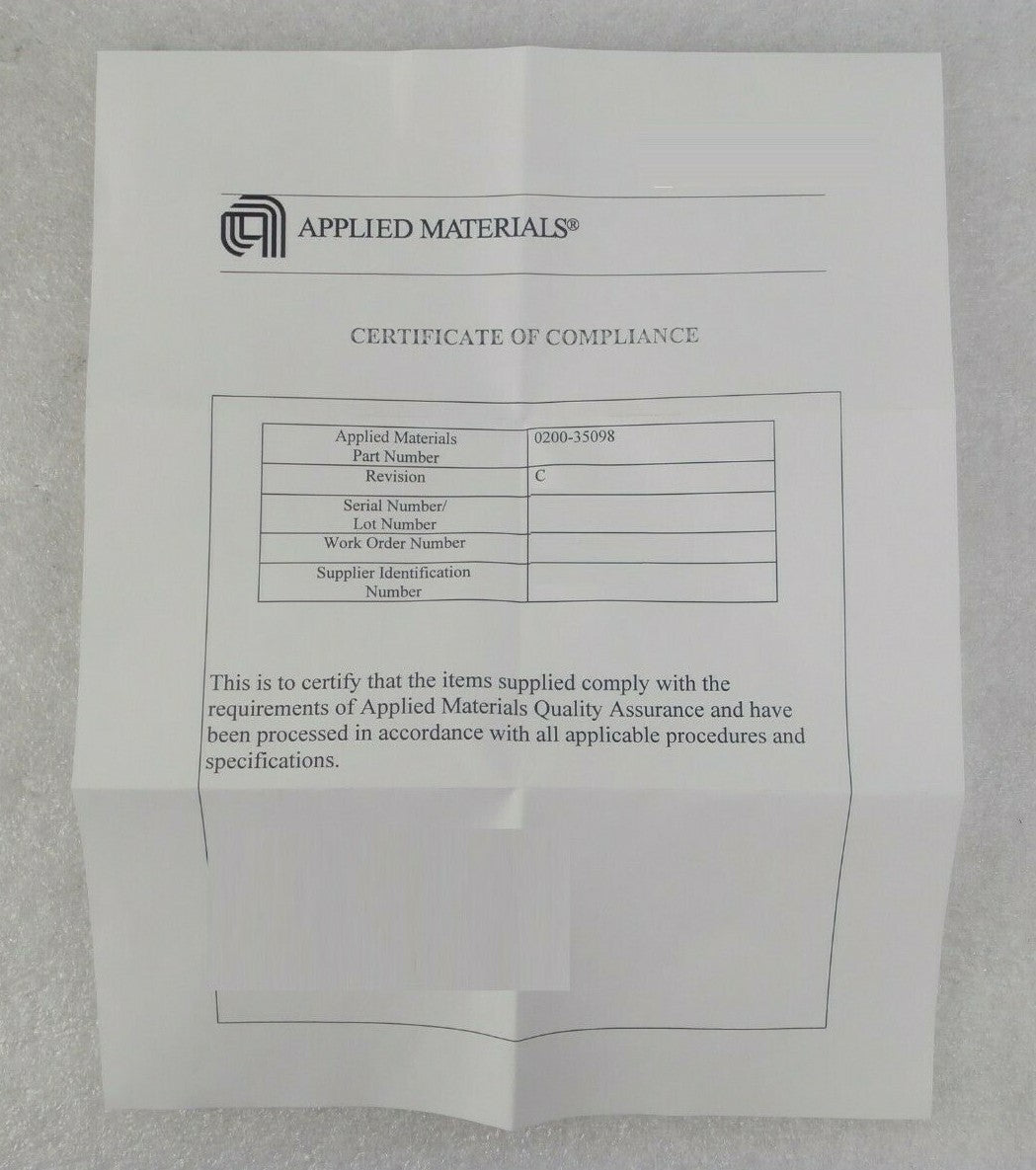 This AMAT Applied Materials 0200-35098 Nitride Lower Quartz Chamber Liner is new surplus. Included Certificate of Compliance. The physical condition is great.Β