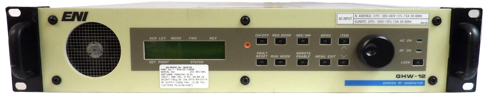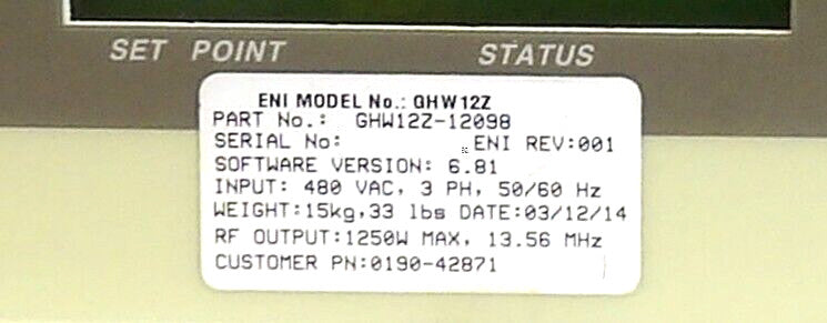 GHW-12Z Genesis ENI Power Systems GHW12Z-12098 RF Generator AMAT Working