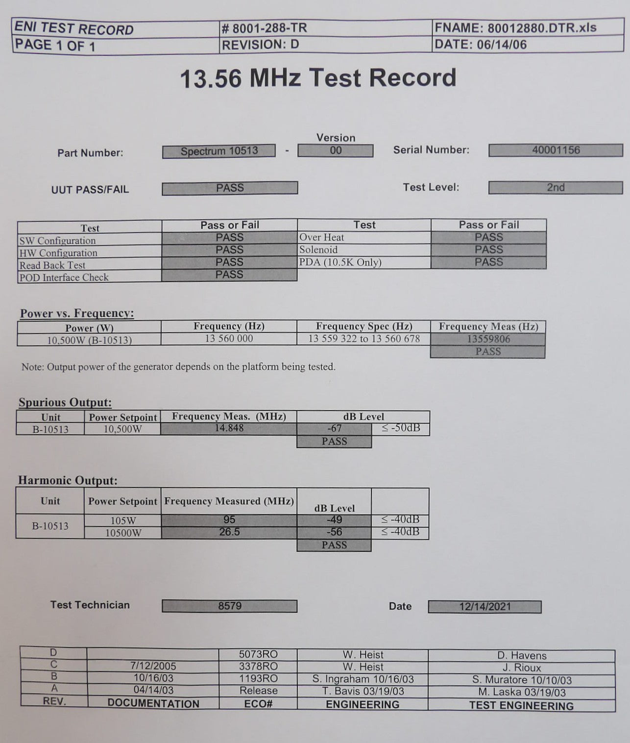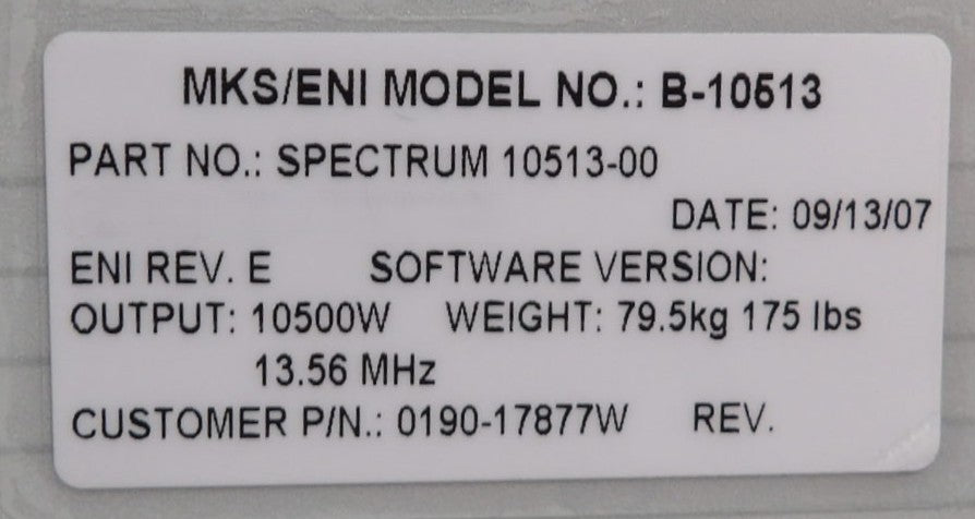 Spectrum B-10513 ENI Power Systems 10513-00 RF Generator 0190-17877 Refurbished