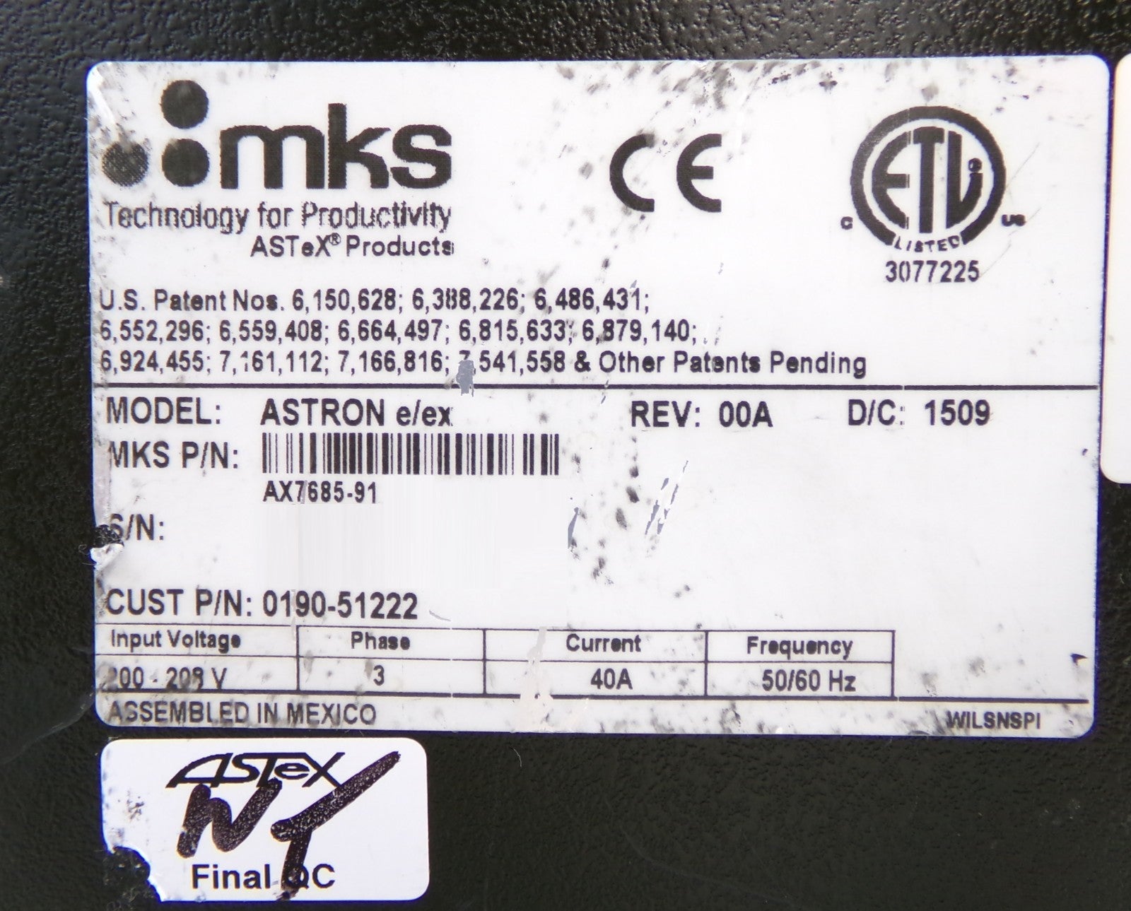 ASTRON e/ex MKS Instruments AX7685-91 RPS Plasma Source ASTeX Untested As-Is