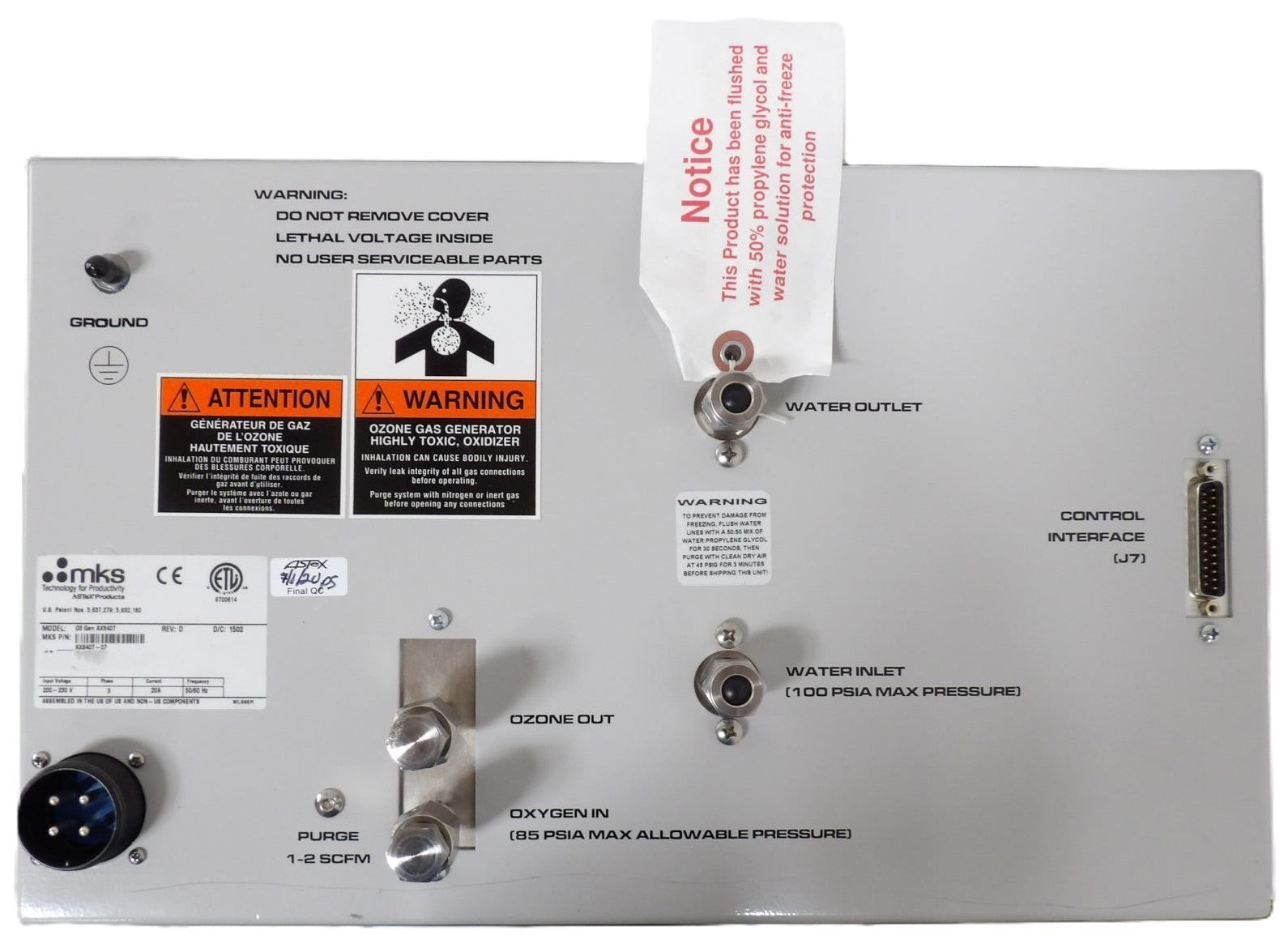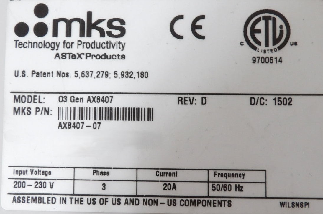 AX8407 MKS Instruments AX8407-07 O3 Ozone Generator ASTeX OEM Refurbished