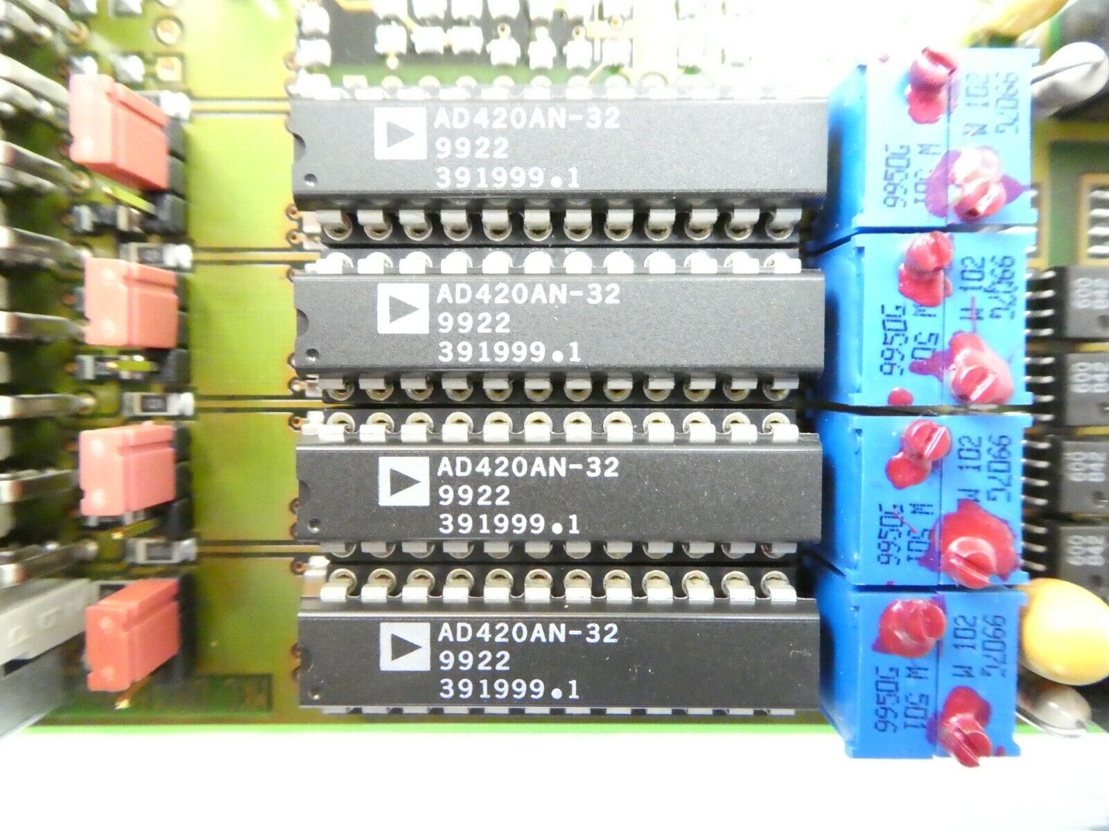 This MKC Michels & Kleberhoff Computer 109000cc DAC16 PCB Card is used working surplus. The physical condition is good, but there are signs of previous use and handling.